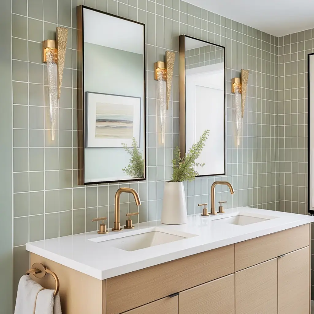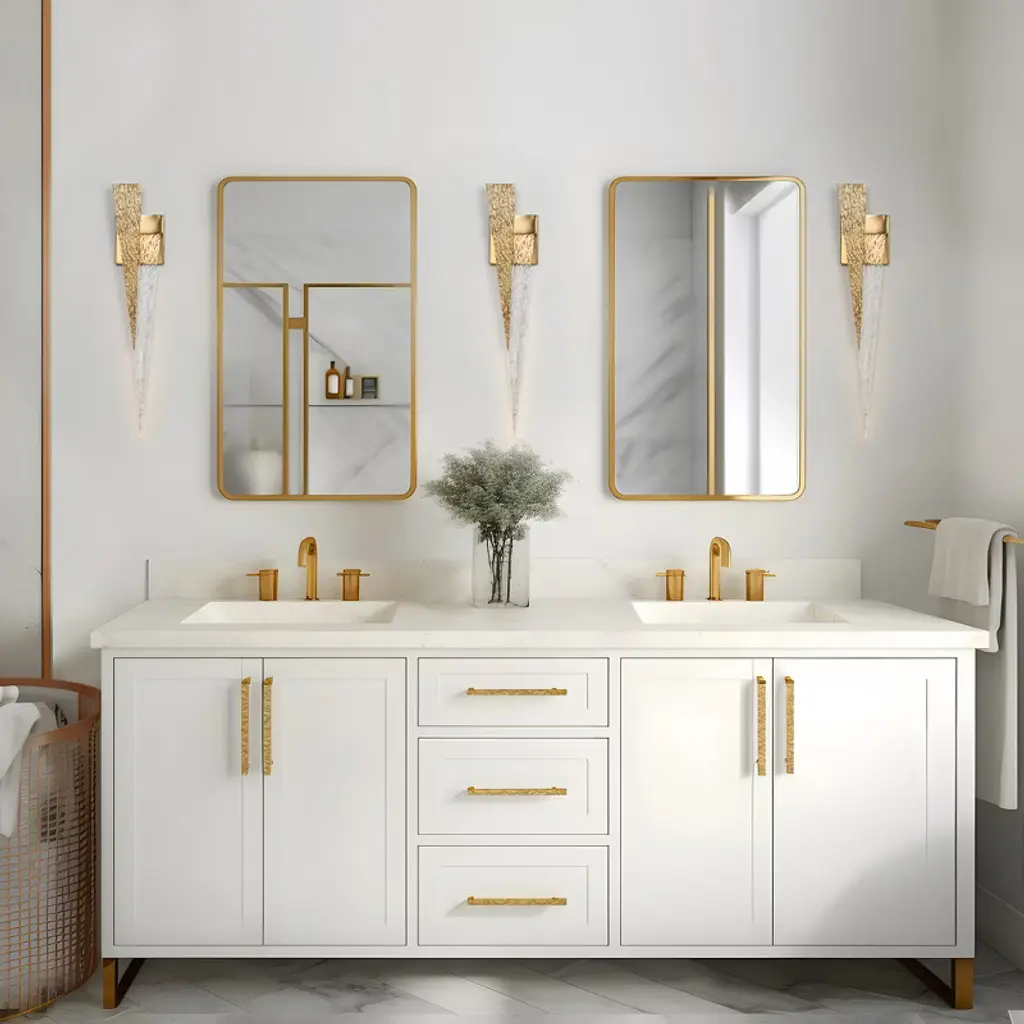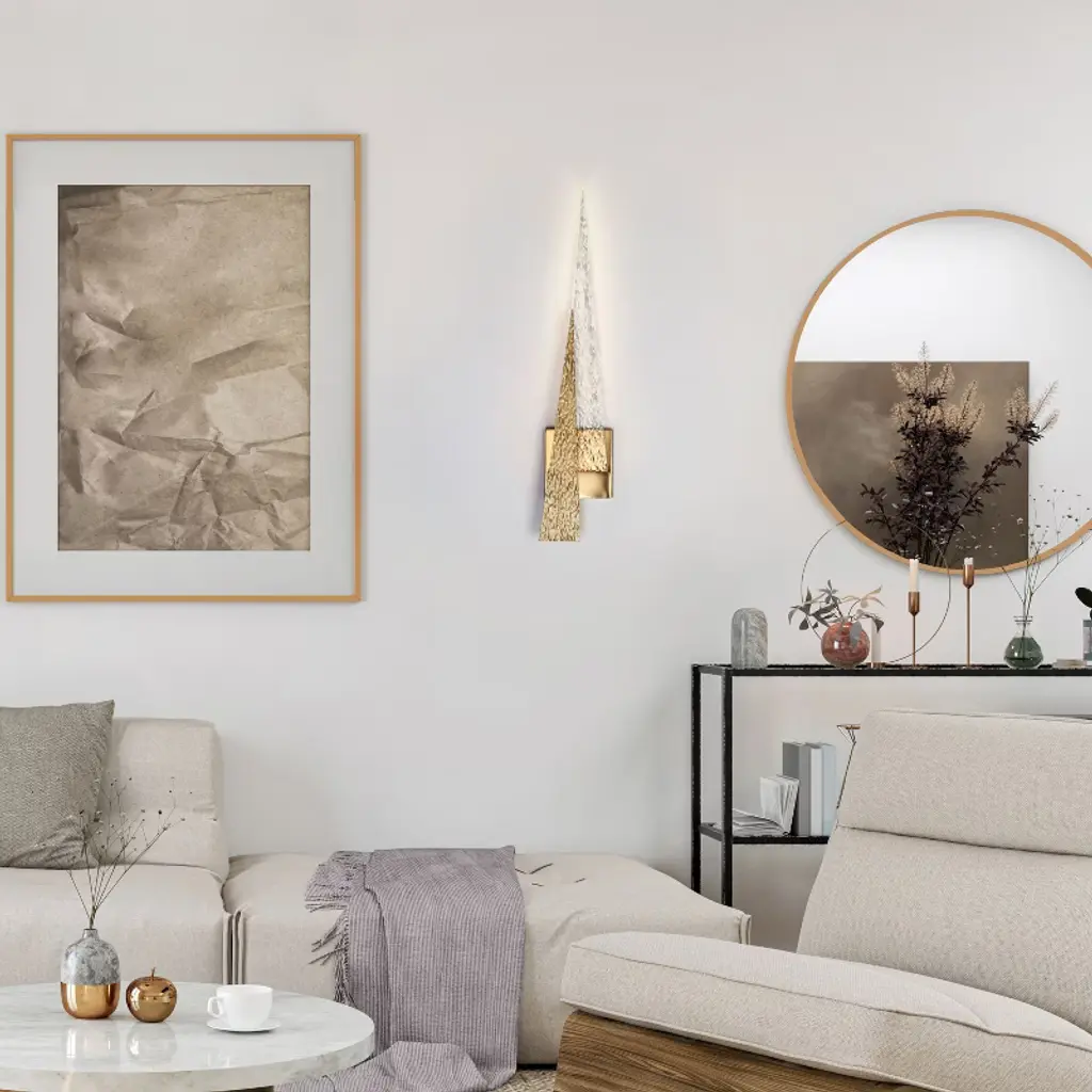 Illuminate your living space with our exquisite Gold Wall Sconce, the perfect addition to elevate your wall decor. This polished gold sconce wall lighting is the perfect choice for adding a touch of elegance to your space. This modern sconce bathroom wall lighting provides ample lighting, making it easy to get ready in the morning or apply makeup. The gold finish adds a luxurious touch to your room decor, and the sleek design complements any modern or contemporary style. This indoor wall sconce is easy to install, and the high-quality construction ensures that it will last for years to come. Upgrade your home decor with our stunning wall sconce today!