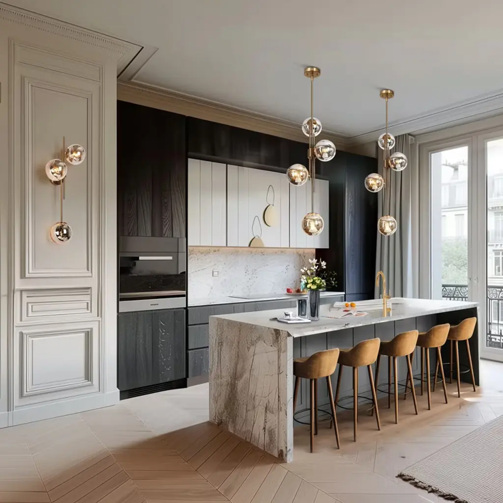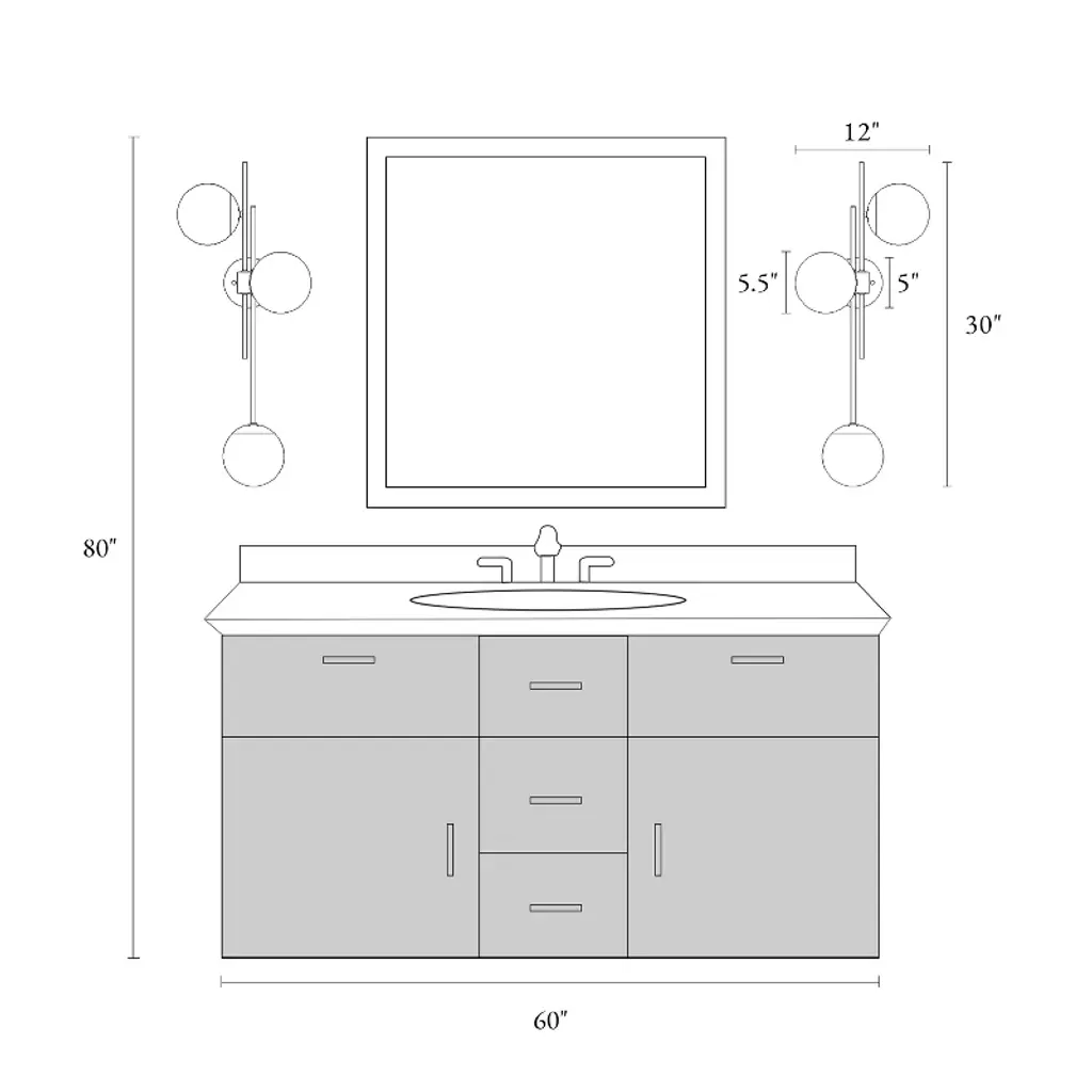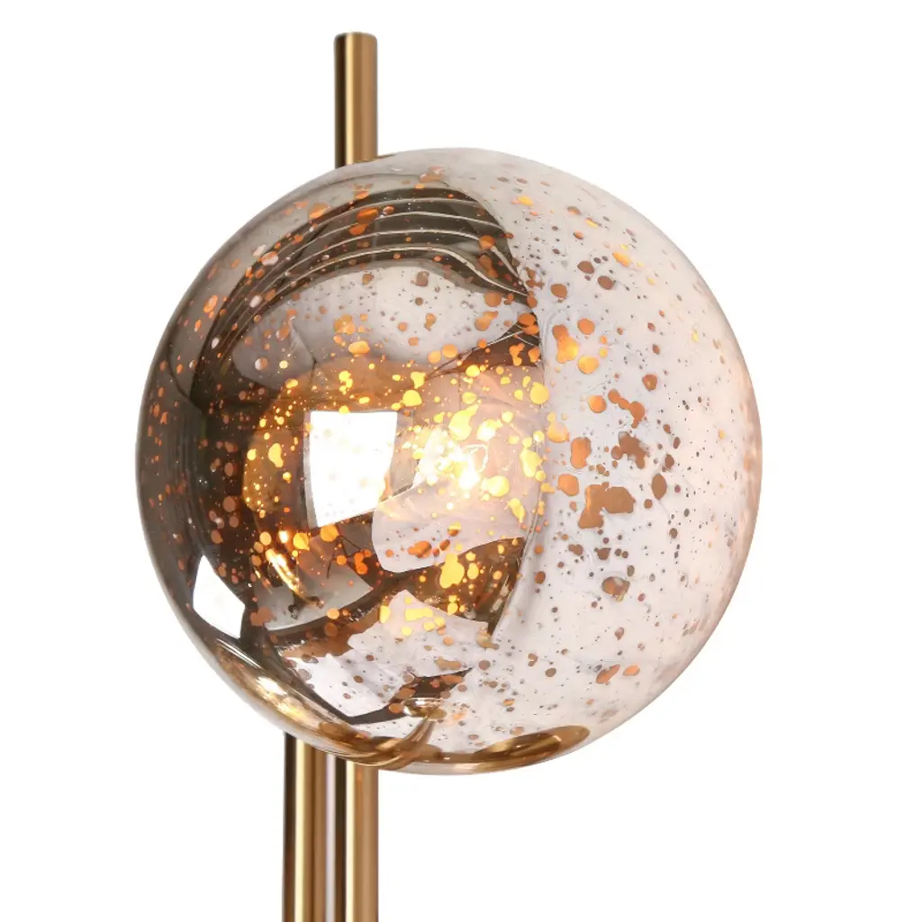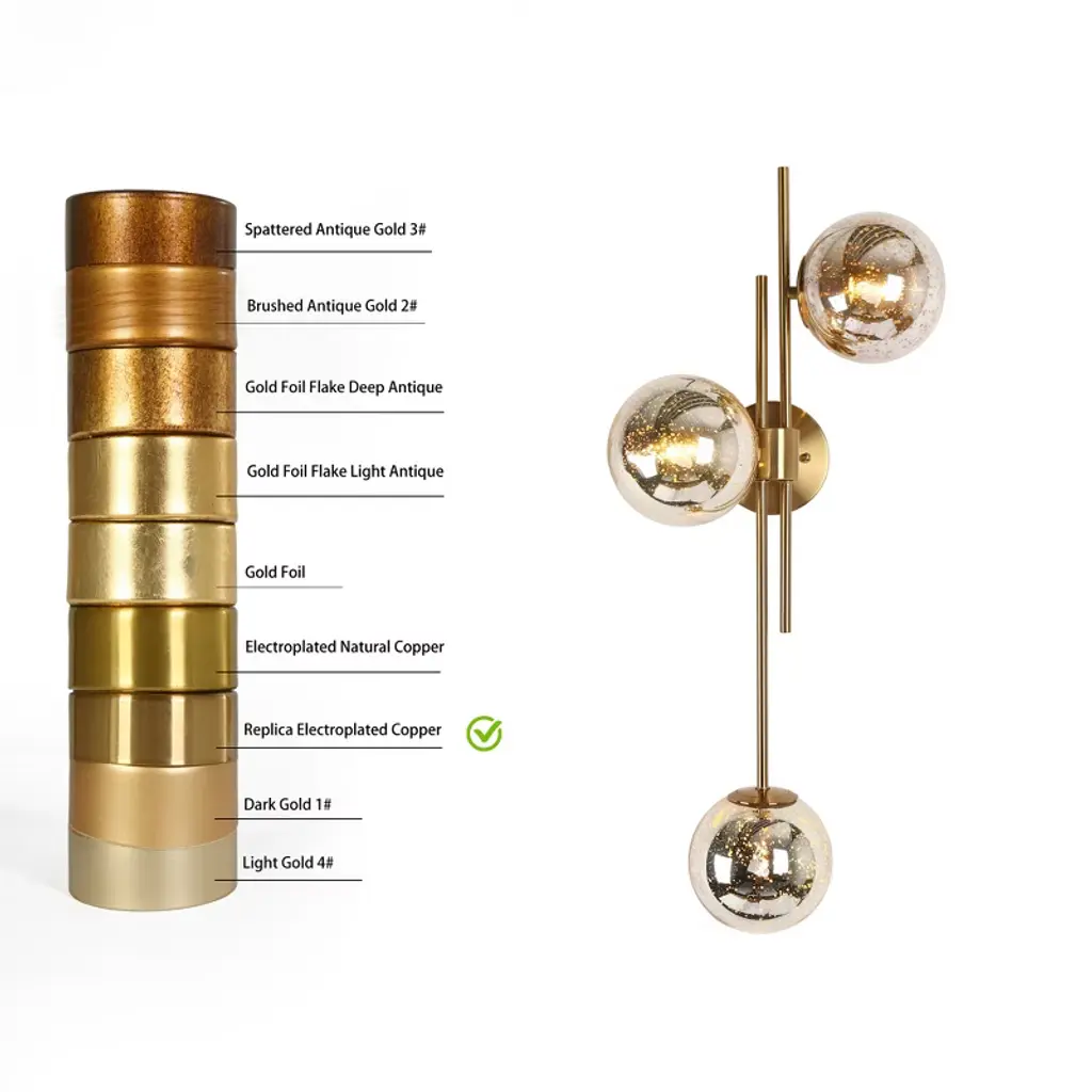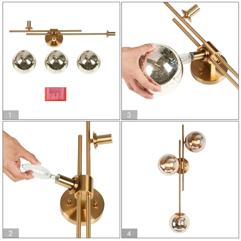 Revamp your bedside lighting with our modern and elegant wall sconce, designed to make a striking statement. Featuring high-end mercury glass globes suspended at varying lengths from a plated brass plate, this fixture adds a touch of sophistication to any space. Pair these sconces with a dark wall paint color to create a stunning contrast and make them truly stand out. Handcrafted by skilled artisans, this three-light modern gold wall sconce boasts a round backplate and straight arm finished in plated brass, complemented by premium mercury glass shades. Elevate your home decor with an understated luxury motif courtesy of this exquisite lighting fixture.