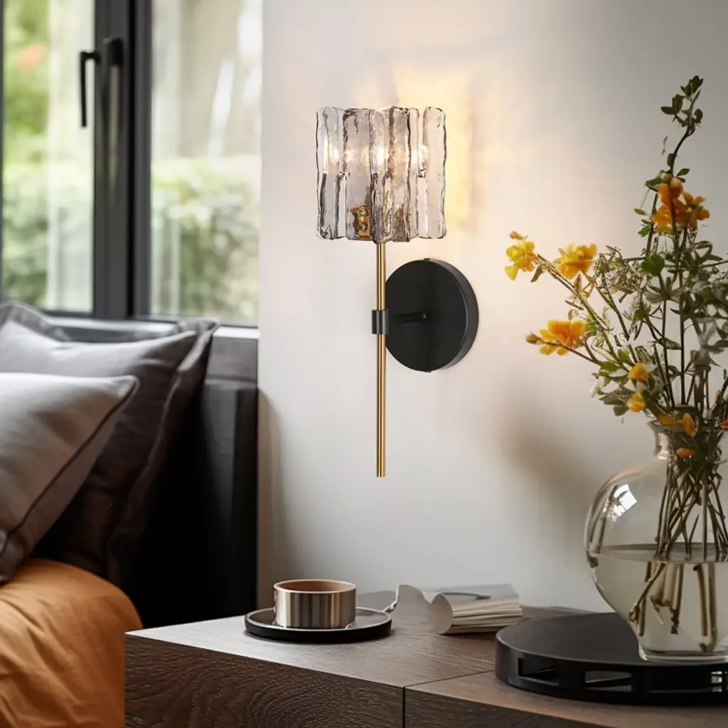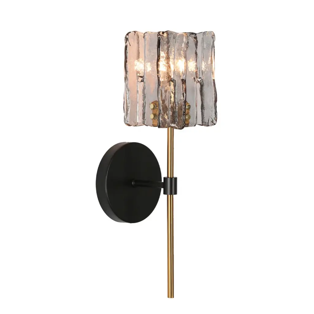Lnc Echonalyri 4.7-in Polished Gold And Black Wall Light With Smoked Gray Textured Glass, Modern, 1-light