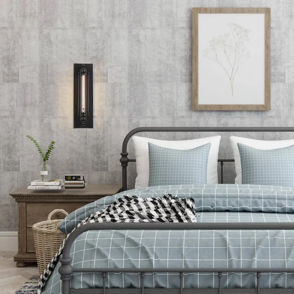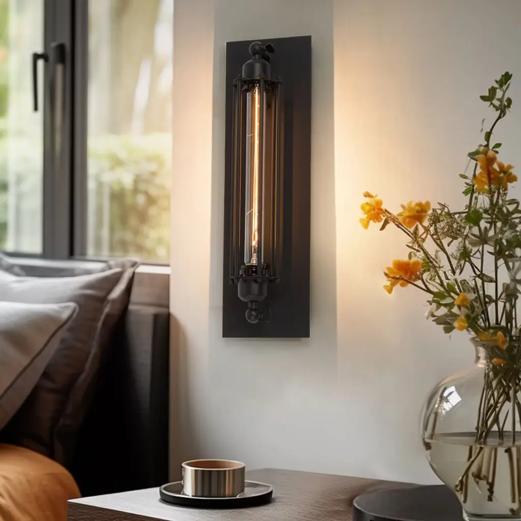 This versatile black wall sconce brings a touch of industrial charm to any space with its sleek matte black finish. Crafted from durable, high-quality materials, it features a unique cage-encircled rectangular silhouette that adds an industrial edge to your interior. Perfect for any room in your home, this medium-scale light fixture offers both style and functionality, making it an ideal choice for illuminating your living area, bedroom, hallway, or any other space you desire.