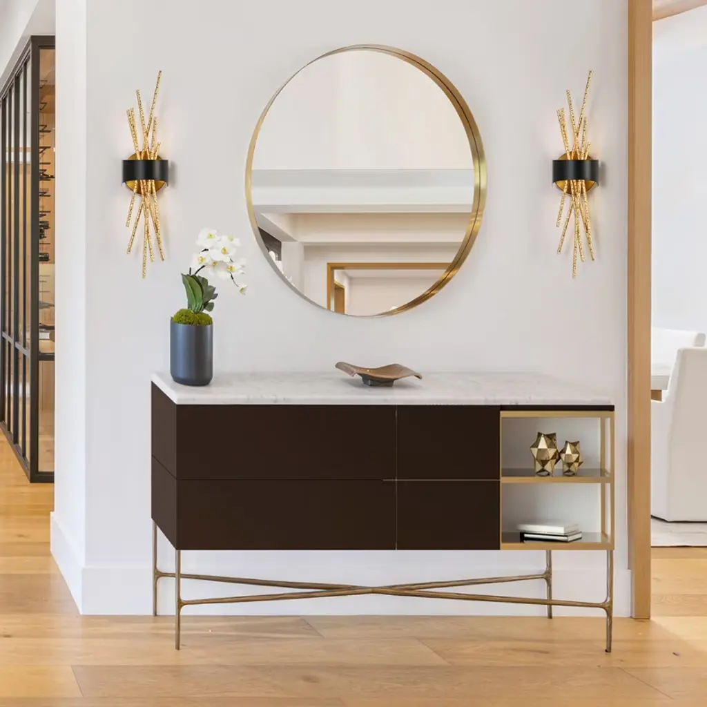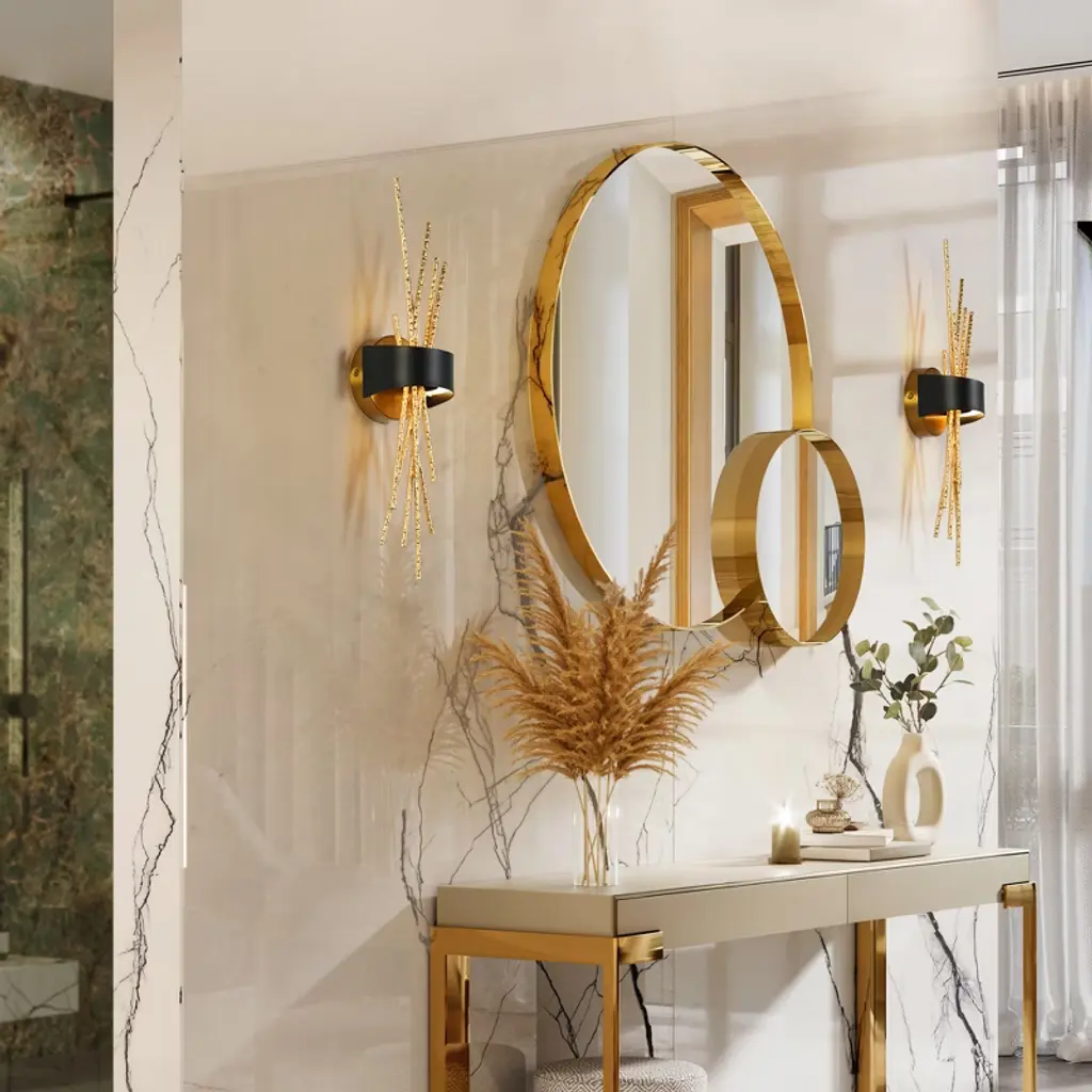 Discover our modern luxury wall sconce, a fusion of contemporary style and artistry. The forged metal construction with geometric lines exudes sophistication. Its integrated LED, with 8W power and 480LM output, offers adjustable 2700 - 5000K lighting for any mood. UL-certified and damp-rated, it's safe and reliable. A two-year warranty and easy installation make it a worry-free choice. Ideal for enhancing the ambiance of living rooms, hallways, baths, or bedrooms with its soft, warm glow and stylish metal design.