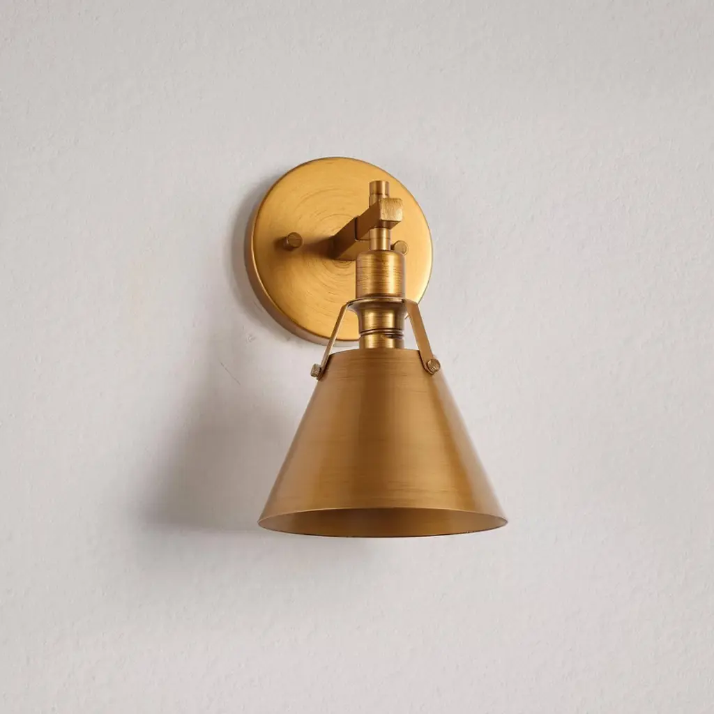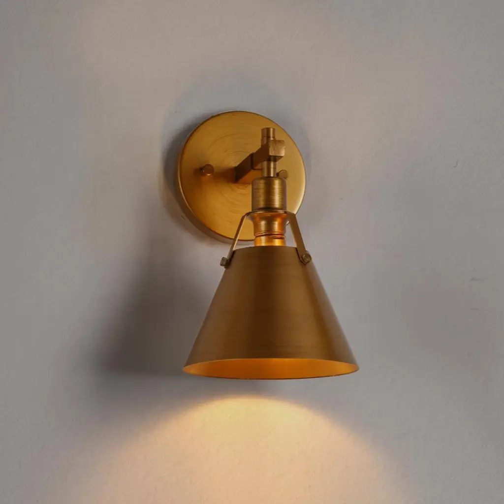 This sleek and stylish wall sconce brings a touch of modern industrial elegance to any space. Featuring a sophisticated brushed gold finish and a clean, minimalist design, it's perfect for adding a contemporary flair to your living room, hallway, or entryway.Elevate your decor with this timeless light fixture, blending style and practicality seamlessly.