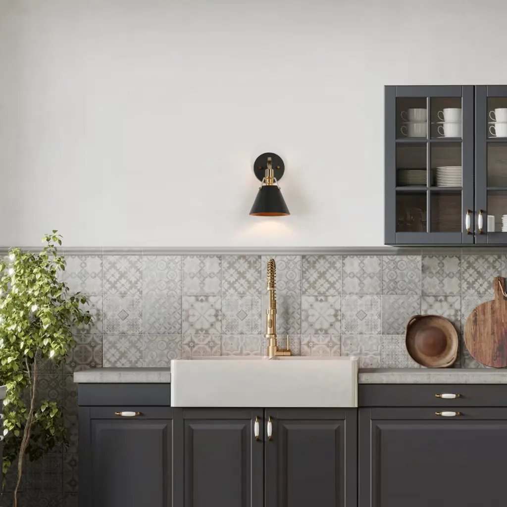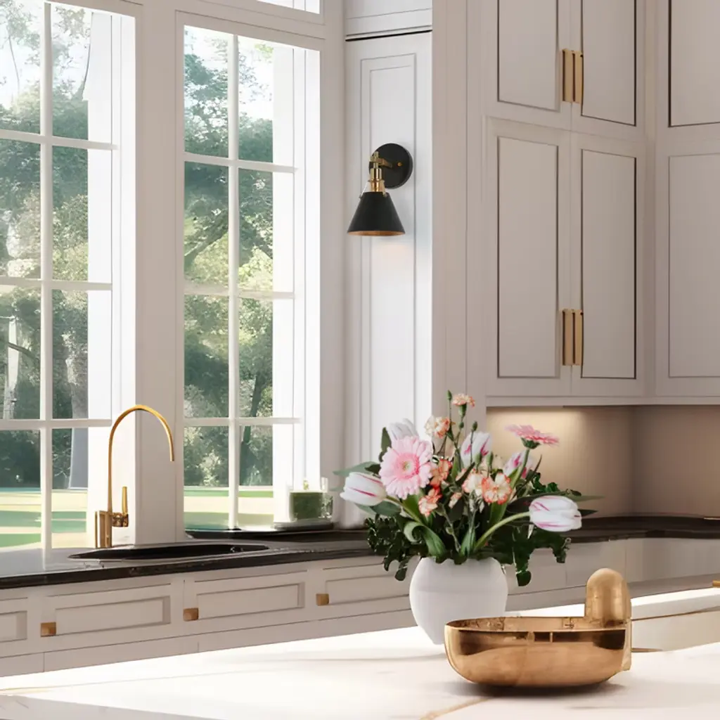 Exhibiting the innovation design elements of this collection wall sconce, the wall sconce fully blends the master design sense featuring a burnished gold and matte black iron body and bell shade, it makes a stunning mark and shines in any indoor decor.