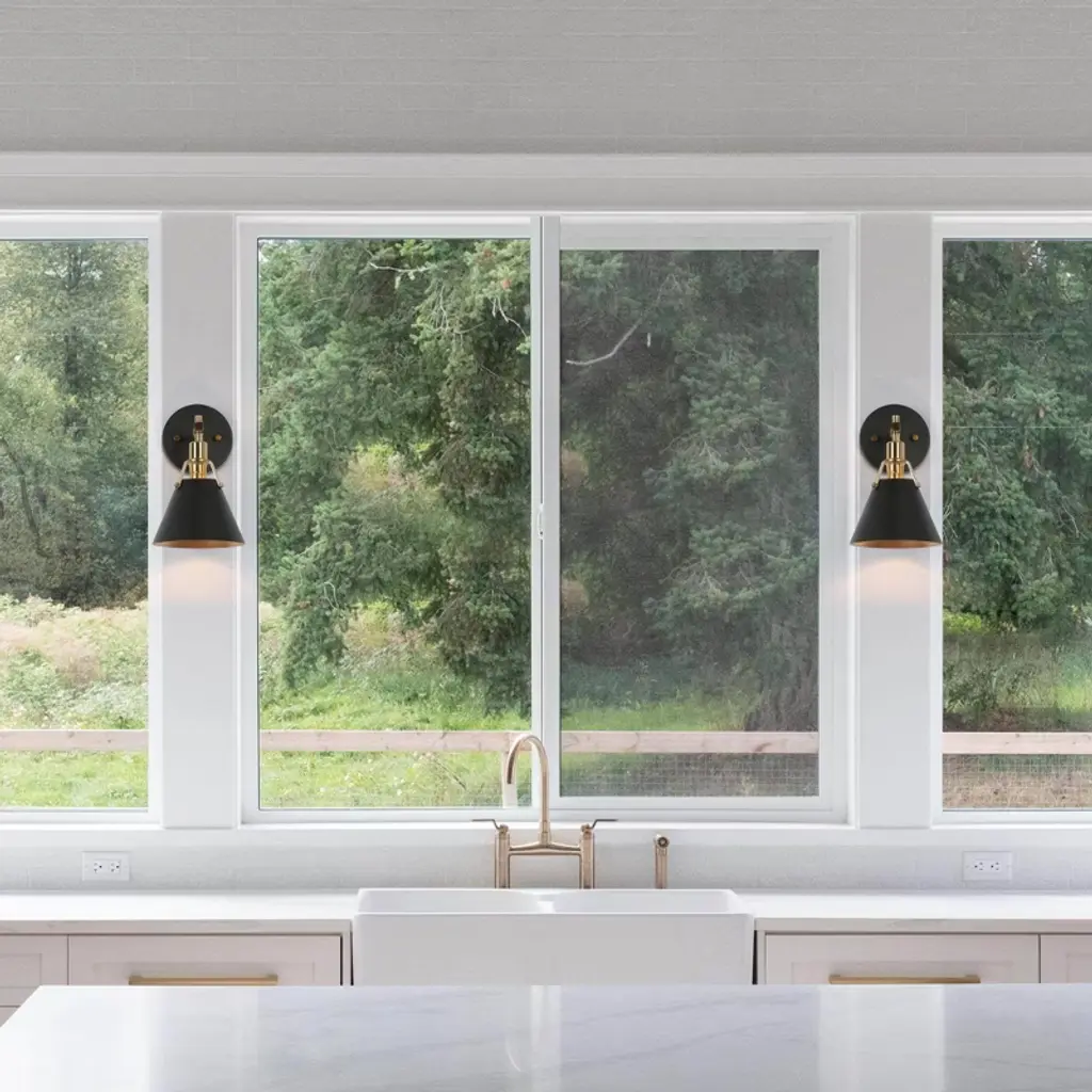 Lnc Nero 6-in W 1-lights Matte Black And Polished Gold Bell Modern/contemporary Wall Lights