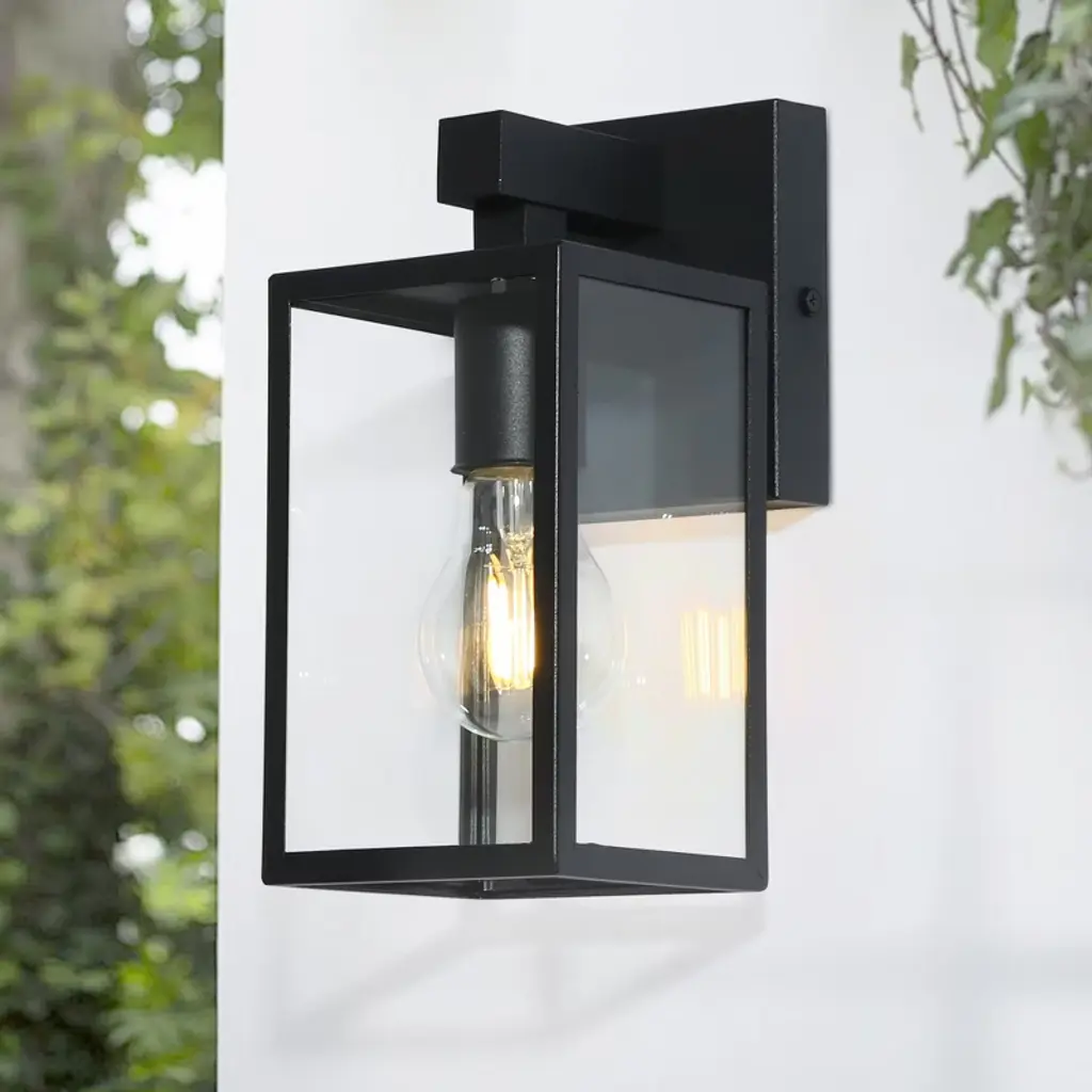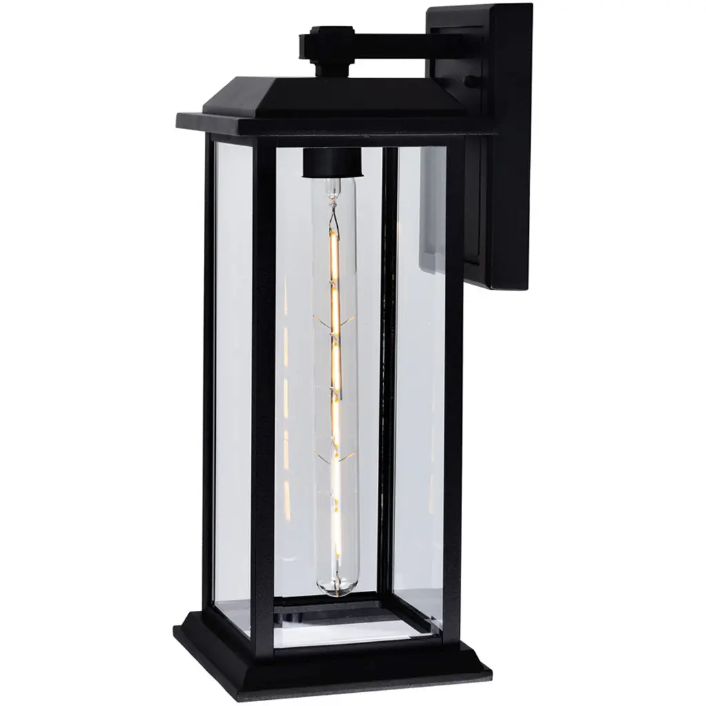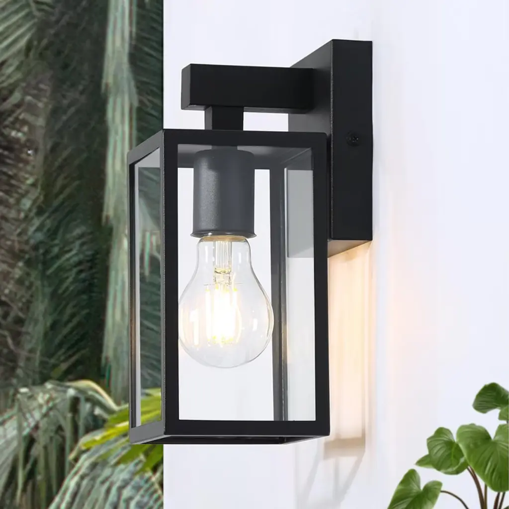 Designed by LNC, this 1 light black outdoor wall sconce brings timeless charm and durability to your home's exterior. Featuring a clean-lined matte black metal frame and clear glass panels, it creates a sleek, contemporary silhouette that complements a range of styles,from modern farmhouse to transitional and coastal. The transparent enclosure highlights the bulb inside, adding visual interest while casting a bright, welcoming glow. Crafted from weather-resistant aluminum, this fixture is built to withstand the elements, making it a perfect lighting solution for your patio, porch, garage, or entryway.