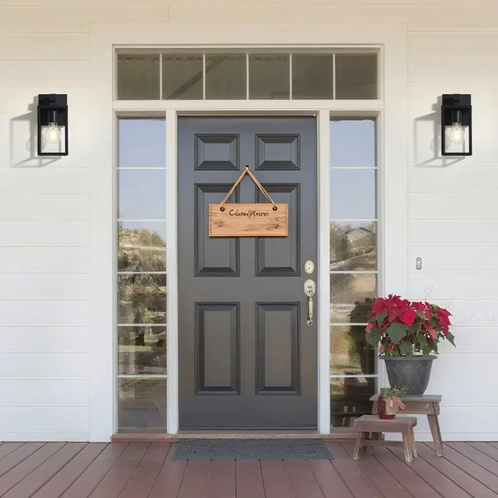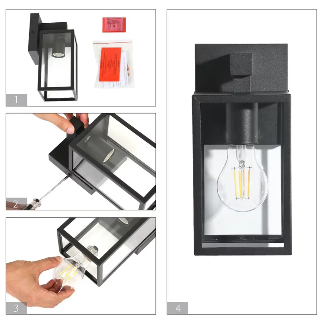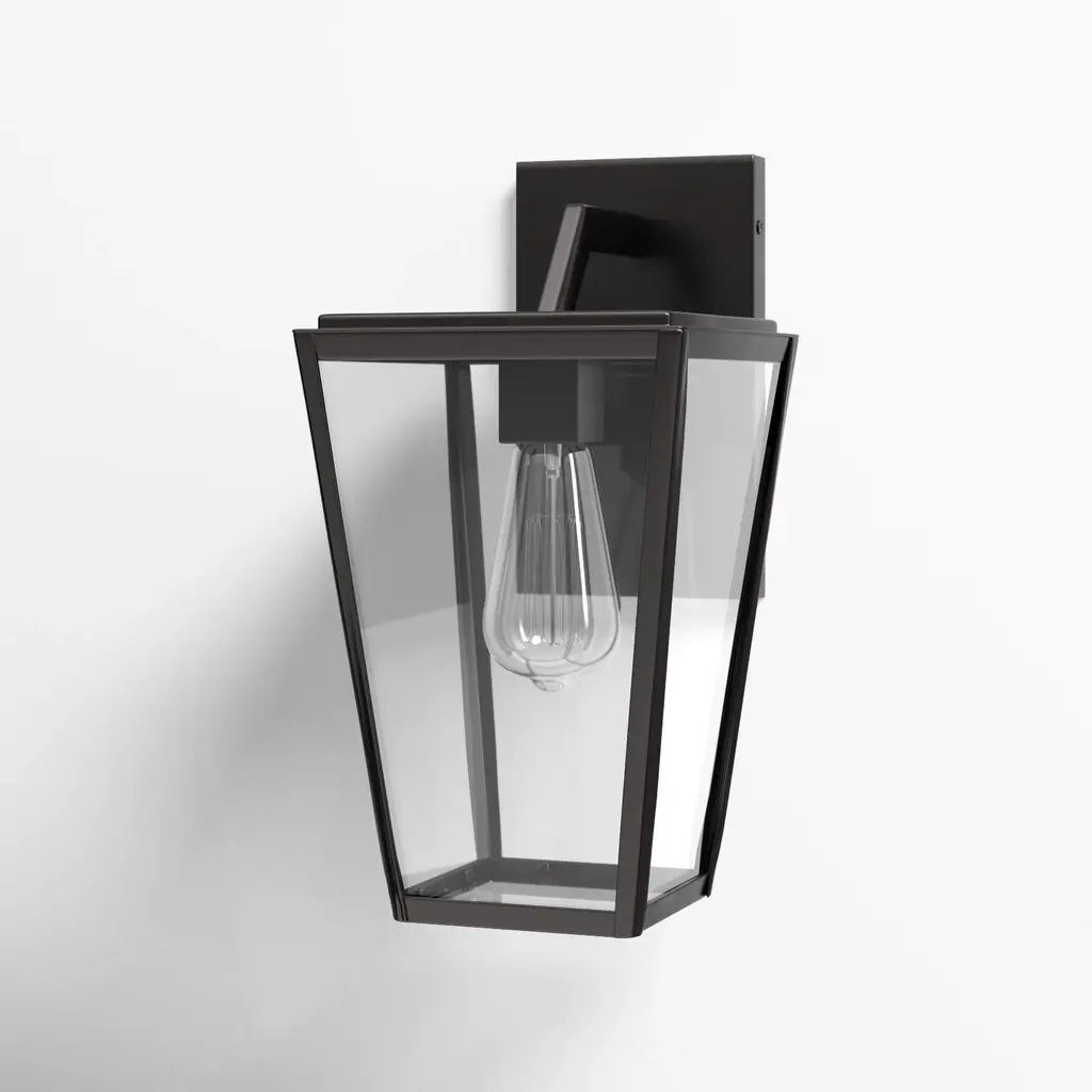 Designed by LNC, this 1 light black outdoor wall sconce brings timeless charm and durability to your home's exterior. Featuring a clean-lined matte black metal frame and clear glass panels, it creates a sleek, contemporary silhouette that complements a range of styles,from modern farmhouse to transitional and coastal. The transparent enclosure highlights the bulb inside, adding visual interest while casting a bright, welcoming glow. Crafted from weather-resistant aluminum, this fixture is built to withstand the elements, making it a perfect lighting solution for your patio, porch, garage, or entryway.