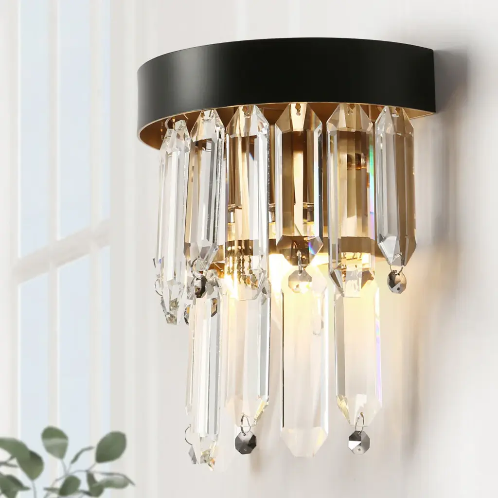 Lnc Phesonlaxy 1-Light 7.9" Modern Crystal Wall Sconce, Black/brass
