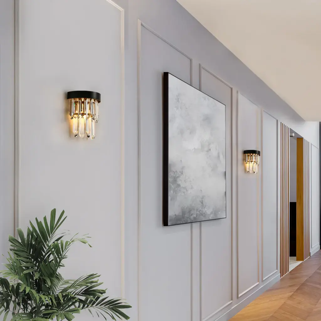 Inspired by the Art Deco style of 1920s Paris, our collection from Phoenix captures the period''s fascination with geometric forms. Masterfully refracting the light, hundreds of faceted, dynamic prisms evoke the allure of the era. Hanging like lush fringe from a welded iron frame, the angular glass juxtaposes elegance and modernism.FeaturesModel: A05003WMaterial: Metal,Crystal GlassColor: Black,BrassStyle: ModernFinish: Matte Black,Elelectroplated Brass,CrystalProduct Dimension: 7.9"W x 10"H x 4.7"EProduct Weight: 3.5 lbs.Canopy Dimension: 7.9"W x 10"H x 1"EShade Material: GlassShade Color: CrystalShade Shape:EmpireShade Dimension: 7.9"W x 10"H x 4.7"ECompatible Wall Types: FlatHeight/Vertically Adjustable: NoAdjustable Height: YesLocation: DampDimmable: Yes, when used with dimmer switch and dimmable bulbsKey FeaturesIntegrated LED: NoBulb Type: Type BBulb Base: E12 CandelabraMaximum Wattage: 40WNumber of Bulb: 1Bulb Included: Not IncludedVoltage: 120VMount Type: Wall MountAssembly Required: YesMounting Accessory Included: YesPower Source: HardwiredProfessional installation recommended