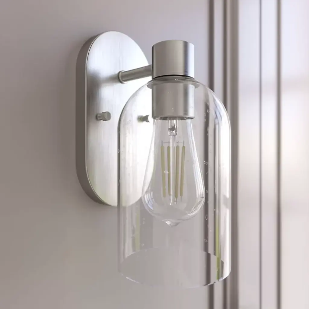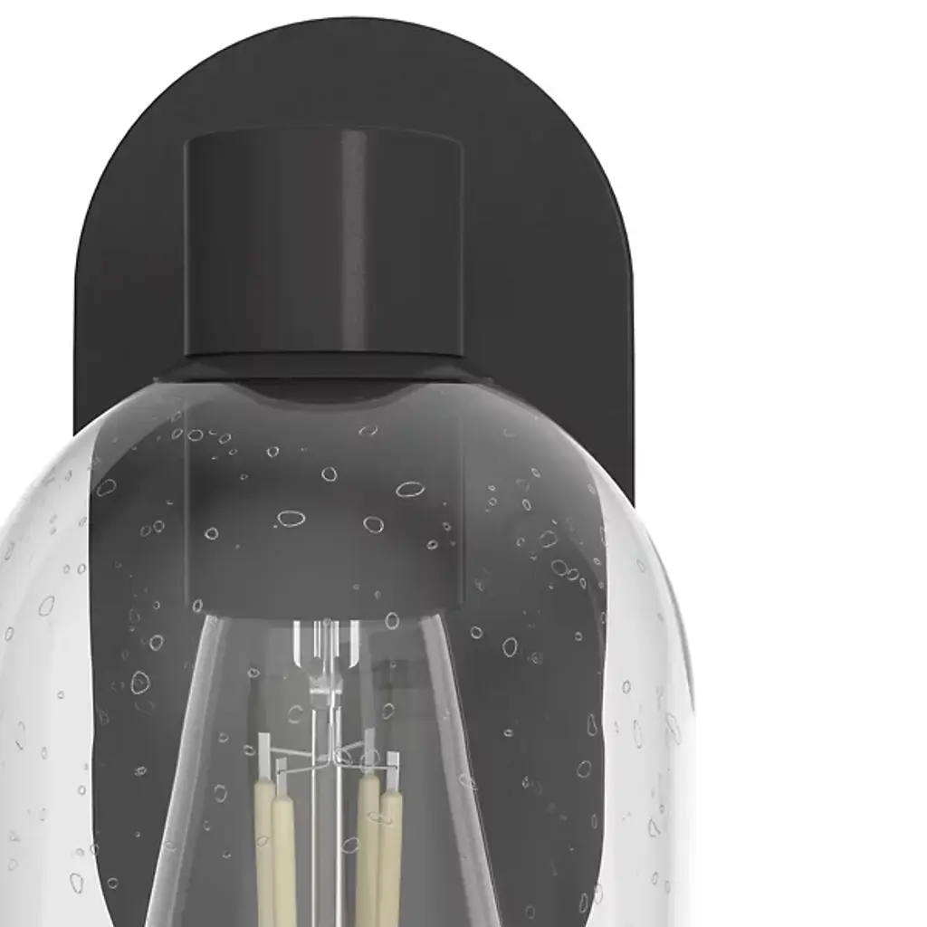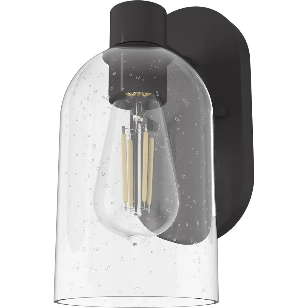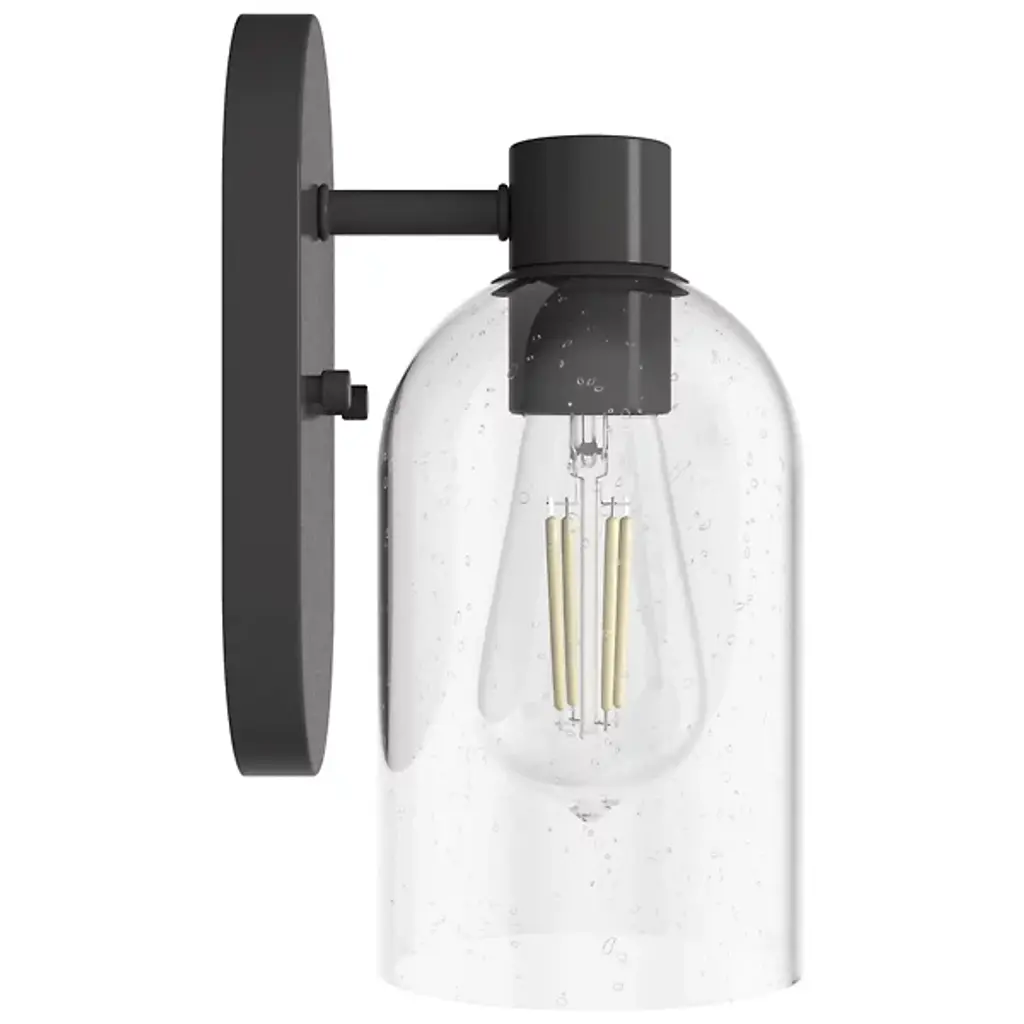 Add an airy accompaniment to inside walls with the enticing simplicity of the Lochemeade Wall Sconce from Hunter Fans. An oval wall plate in smooth metal secures the transitional fixture, extending a short stem from its upper side to downward-facing single-socket lamping held in a glass dome shade. The shade transforms glare from the lamping into a wide-reaching warmth, while the fixture’s damp rating allows it to function fully in any indoor environment.