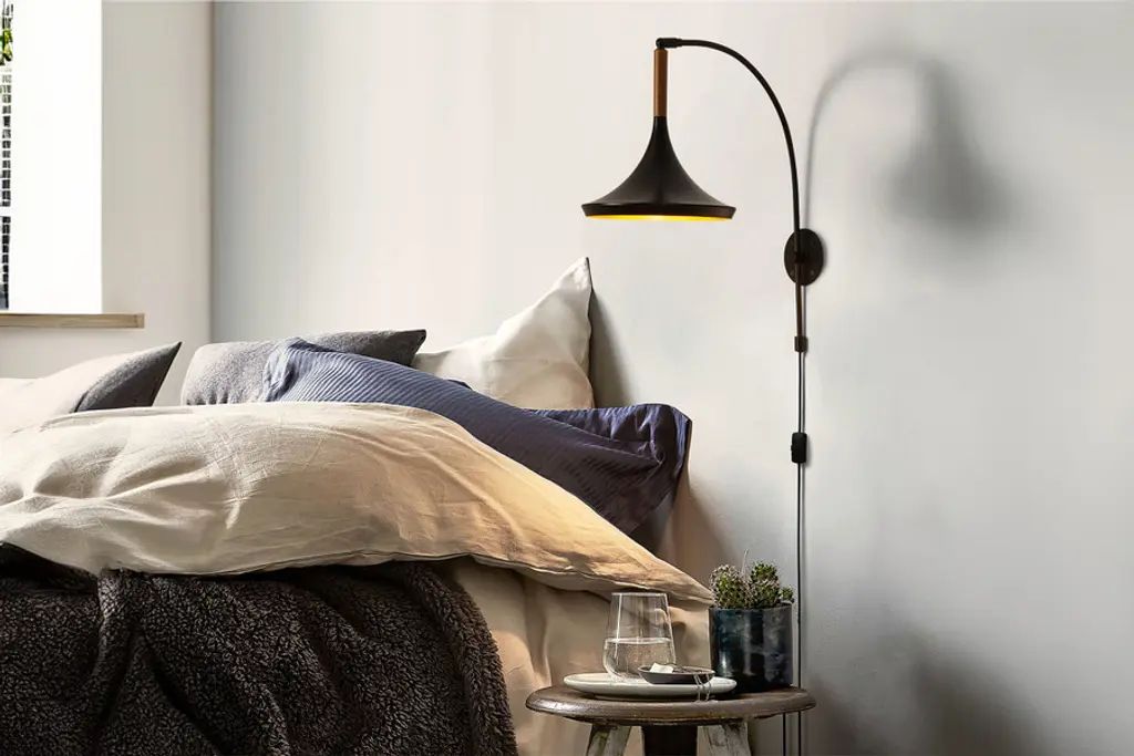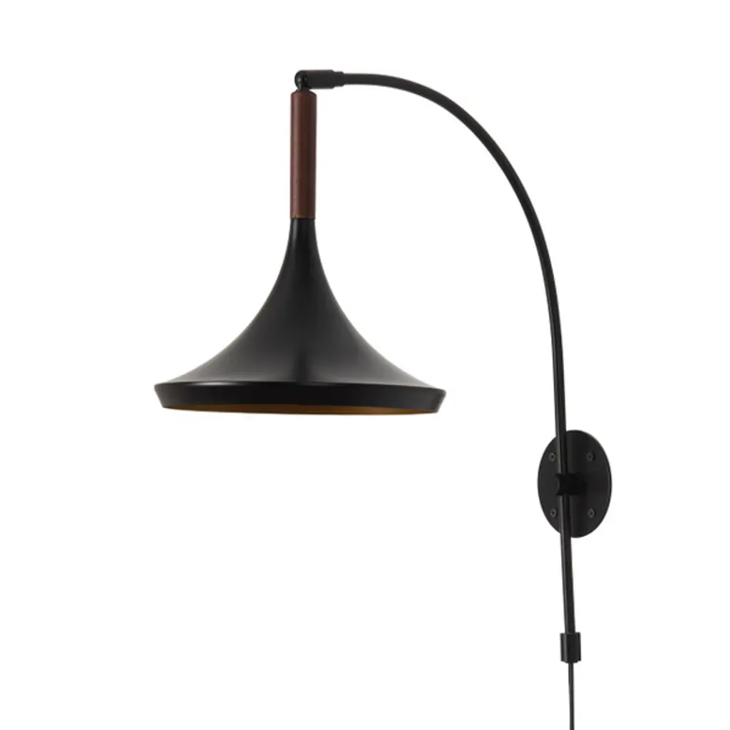 Elevate your space with the Lodi Wall Sconce, a stunning embodiment of mid-century flair and sophistication. This exquisite sconce seamlessly blends a matte black finish with a unique hammered metal shade and walnut accent, creating a luminary that serves as both a light source and a timeless statement piece. The Lodi Wall Sconce is designed to last a lifetime, offering a perfect combination of classic and contemporary design elements that add a distinctive mid-century touch to any room. The hand-applied gold-leaf on the hammered interior creates a warm, diffused light that transforms your space into a haven of warmth and elegance. Customize your ambiance with the adjustable cord, allowing you to hang the Lodi Wall Sconce at the perfect height. Whether used as a standalone piece or paired for a balanced and visually appealing arrangement around beds, mirrors, or reading nooks, this sconce enhances the symmetry and aesthetic of your space. Compatible with dimmer switches and energy-efficient LEDs, the Lodi Wall Sconce ensures the perfect lighting atmosphere while embracing modern functionality. Designed in Venice Beach, California, and built with high-quality materials, this sconce reflects the legacy of NOVA of California's century-long tradition of delivering original contemporary designs.