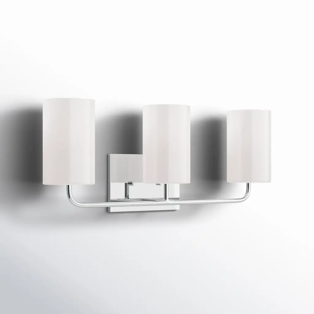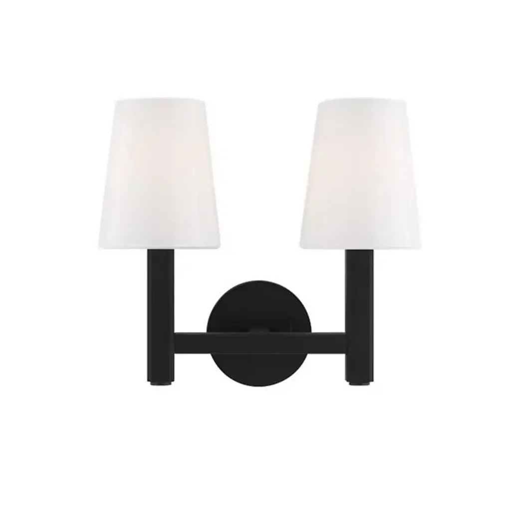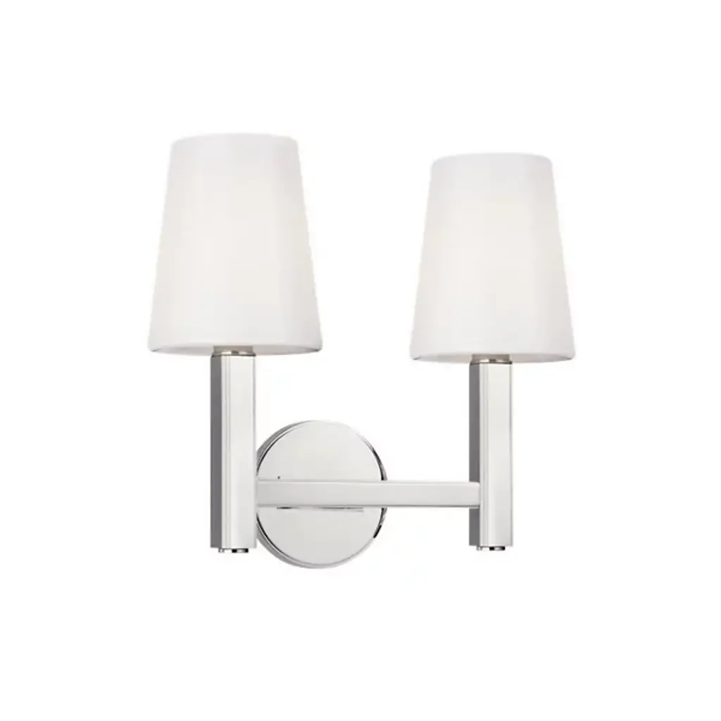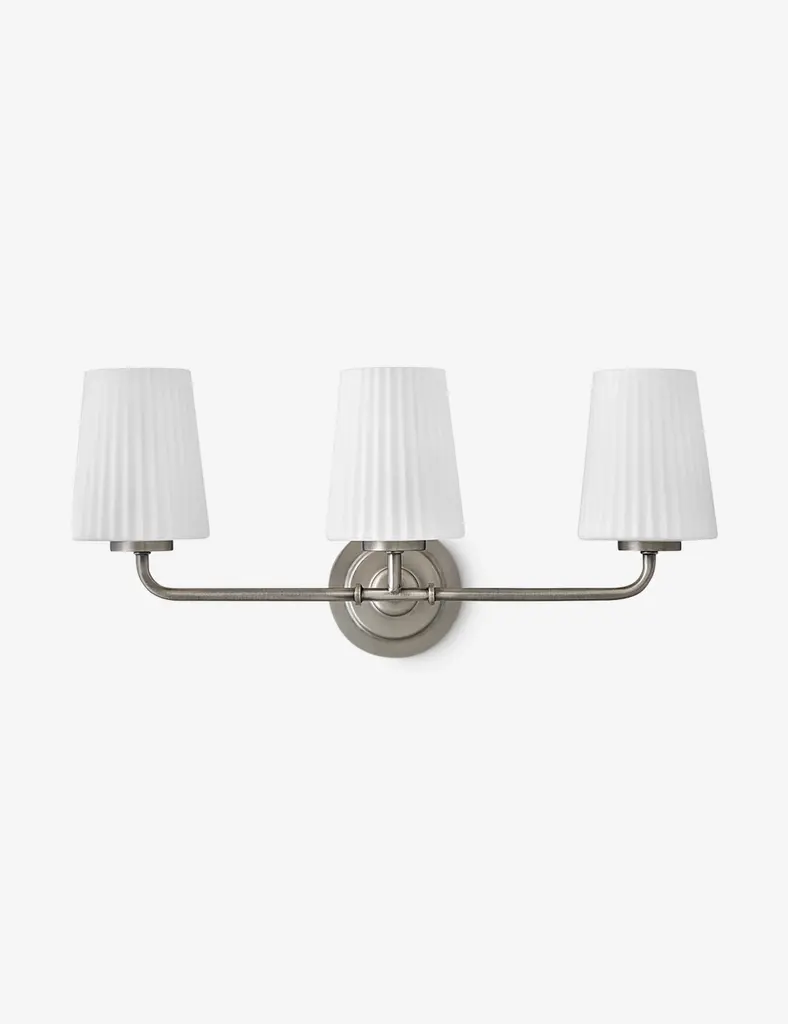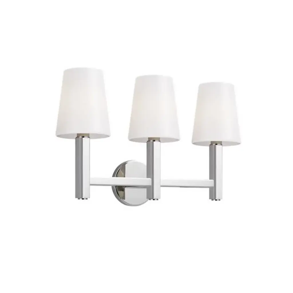 Clean and Balanced. The Logan Vanity Light by Visual Comfort Studio, formerly known as TOB by Thomas OBrien, combines traditional shapes with strength and structure. A circular backplate anchors a strong silhouette that supports some crisp tapered Milk White Glass shades to diffuse light evenly. Detailing along the identical arms and edges of the metal backplate add a bit of industrial texture. Clean lines lend this modern piece a simple silhouette to compliment a variety of décor styles in the bathroom.