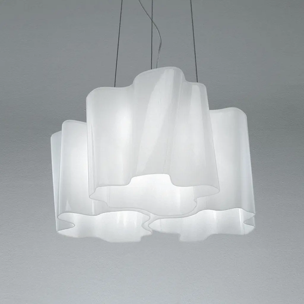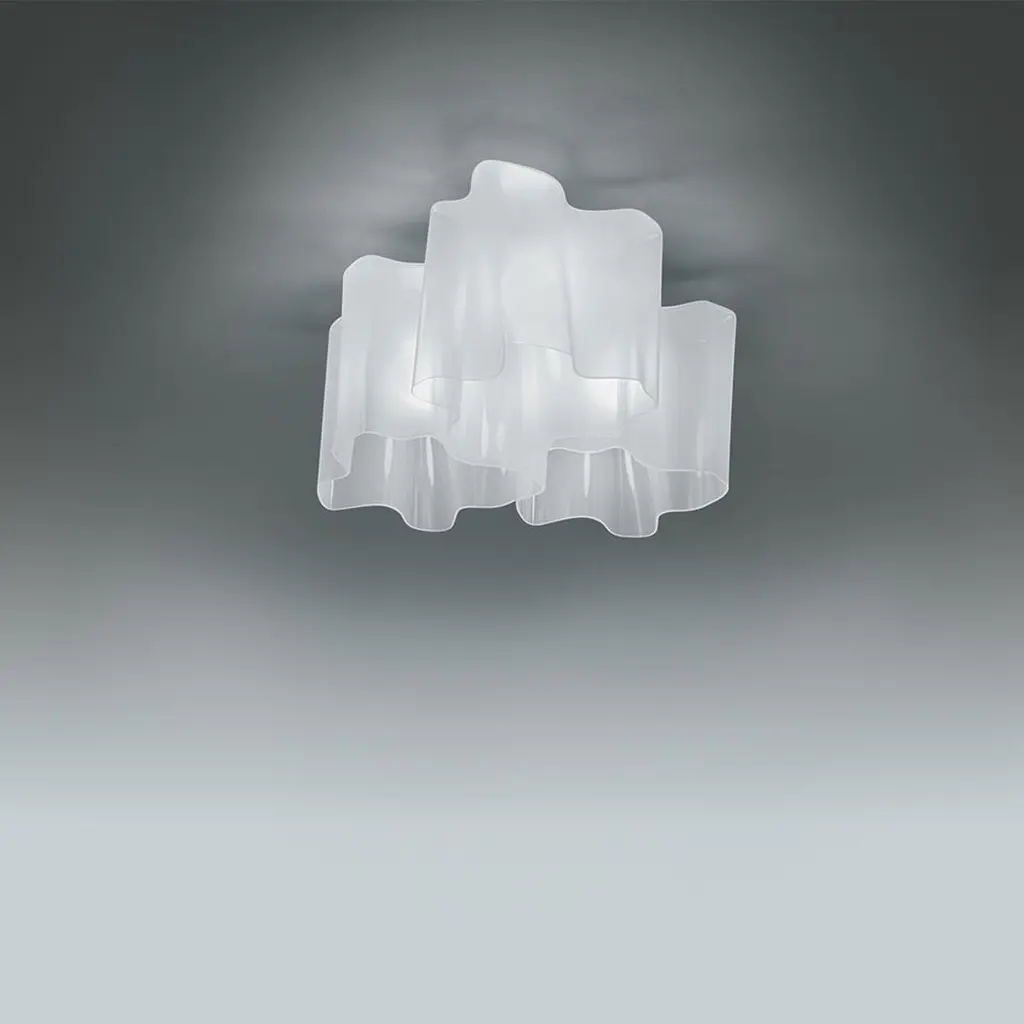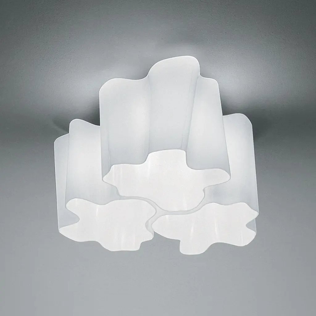Logico Triple Nested ceiling light in milky white glass for Artemide. Inspired by rays of light as they diffuse through the atmosphere, Logico’s blown-glass diffuser takes an organic shape that delivers a soft, ambient light through the glass' satin finish. Logico's modular shape can also be customized into various patterns as imagined by architects, designers or customers to create unique interiors to enhance any interior space.Price per item. Available to order in unlimited quantities, in choice of milky white or smoke grey glass, and in 3 sizes. Also available a linear pattern, as a table, suspension, or wall sconce versions - please inquire for details. This listing is for the Logico triple nested ceiling lamp in milky white glass. In stock lead time 1-2 weeks. Out of stock lead time can add 8 weeks or longer. Lead time and availability are subject to change without notice. Please contact us for current lead time prior to placing time-sensitive orders.Illuminated by 3x standard US medium base (E26) A19 dimmable LED bulbs with a maximum 100W each (bulbs not included). This lamp is IP20 rated and UL listed.Made to order. All sales are final.