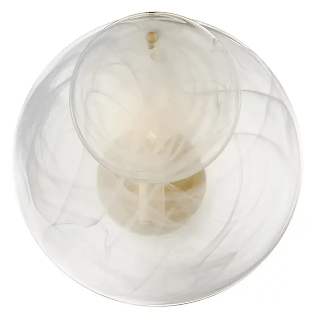 The Loire Wall Sconce by Visual Comfort Signature, formerly known as Visual Comfort, is a dynamic and contemporary addition to your home. Anchored by a simple, circular, metal wall plate, a single candelabra is set behind a layered arrangement of beautiful strie glass. Each of these round glass pieces has a lovely swirling pattern that lends a dose of soft texture to this wall sconce as light filters through both of them, adding a bright and sophisticated touch to surroundings.
