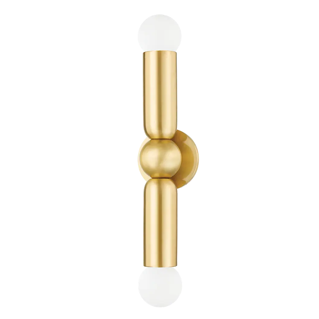 Modern yet industrial, the Lolly Wall Sconce and flush mount captures your attention with sleek curves and a vibrant aged brass or polished nickel finish. Minimalist in nature, Lolly is no wallflower, commanding the room through bold form.
