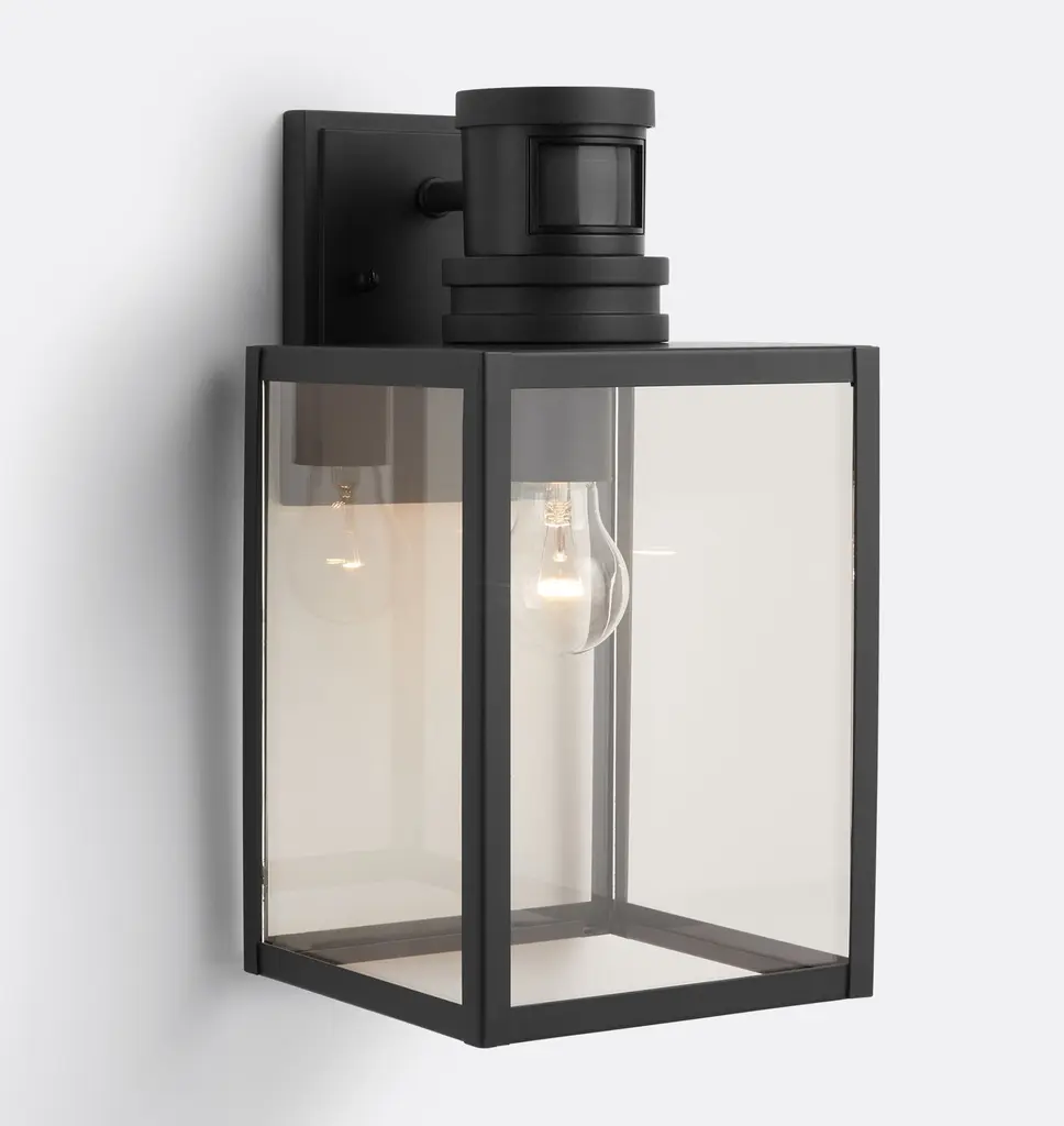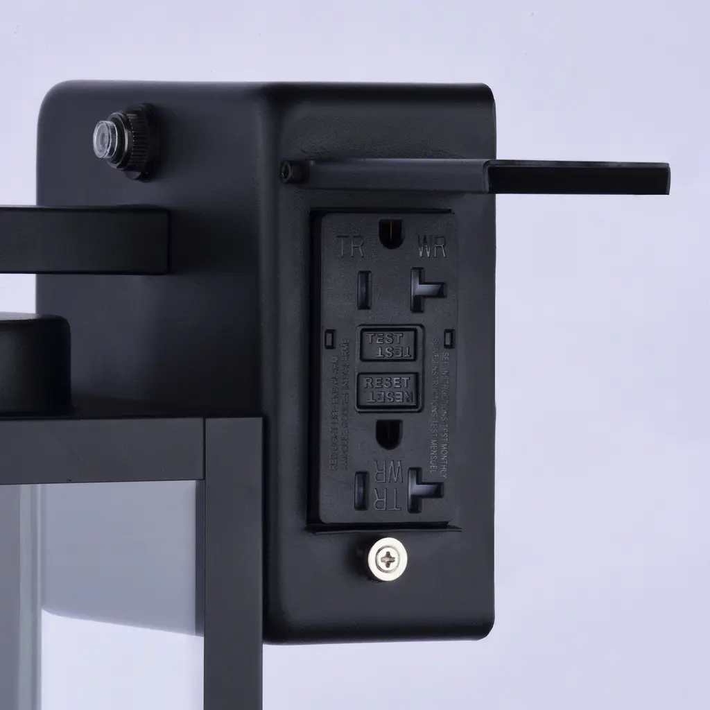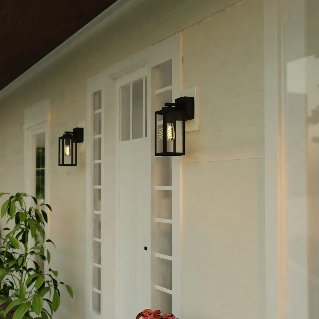Elevate your outdoor space with the Lombard wall light, a stylish and practical addition to your front entry or garage. Its contemporary elongated rectangular silhouette and clear glass shade create a modern and sleek aesthetic. The integrated GFCI outlet provides added convenience, allowing you to power string lights, power equipment, and more. The photocell with energy-saving dusk-to-dawn functionality ensures efficient and reliable illumination.