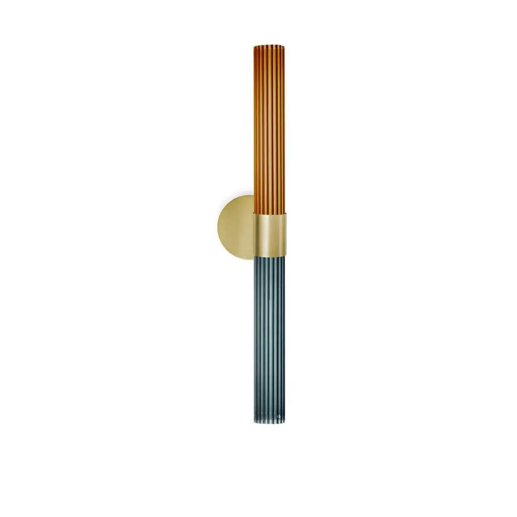 Long Sbarlusc wall lamp by Luce TuDimensions: 13 x H 73.5cmMaterials: Brass and glassCutting-edge technology and craftsmanship come together in this applique with an almost timeless charm. Like a precious jewel, the wall lamp from the Sbarlusc collection is perfect for enriching a space, without losing elegance and character.Available in two standard finishes (champagne and gunmetal) and two on request (rosé and burnished champagne)Technical specifications: 24W, dimmable LED source; luminous flux 1600 lm; 230V 50Hz power supply and IP20 protection; standard light color 3000K; 2700K available on request.LUCE TU is the story of two siblings in love with Milan, their hometown.With the aim of enhancing the historical artisan tradition of the city without losing its past legacy, each lamp contains a fragment of Milanese history. From the choice of the materials selected to design the lamps to the processes and skills chosen, our idea is to hand down the historical and cultural background which is inseparably linked to the soul of our lamps. Hence the choice for product names in old dialect.Thanks to the skilled hands of our artisans, who bring their valuable knowledge and handcrafting techniques, LUCE TU proposes handmade luxury lamps with a captivating New Decò style, deeply rooted in the history of the city.All our lamps can be wired according to each country. If sold to the USA it will be wired for the USA for instance.