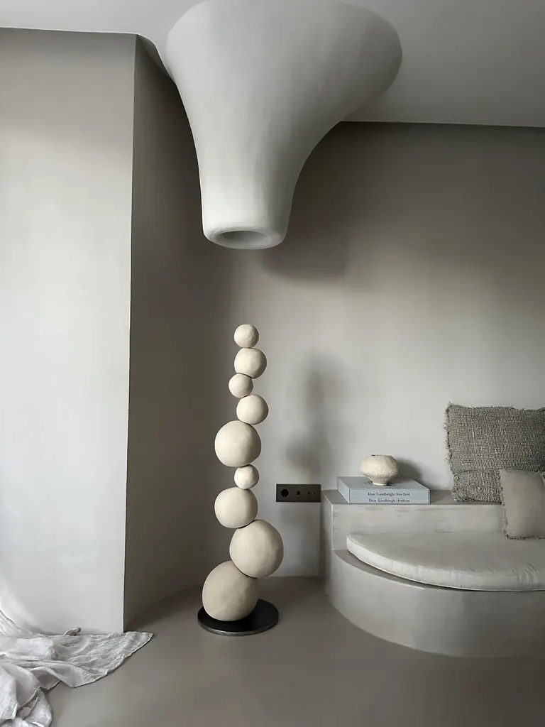 Looking for Equilibrium Sculpture by MCB CeramicsUnique piece.Dimensions: D 20 x H 125 cm. Materials: Ceramic.Numerated and signed by the artist.All measures are indicative as all pieces are unique, hand made."MCB Ceramics is a handmade ceramics brand located in Madrid.Behind MCB Ceramics is me, Mónica, passionate about ceramics, decoration and simple things.I make all the pieces by hand, one by one, following a slow and delicate process. Kneading, shaping, decorating, glazing...Each step takes time and dedication to obtain a unique, handmade piece, perfect in its imperfection.At MCB Ceramics we make decorative pieces: vases, lamps, sculptures, wall lights,…Neutral colors and organic shapes are the main hallmarks of my pieces, looking for spaces that transmit peace and balance and that help us improve our emotional well-being.But also, in my pieces you can see the influence of Rio de Janeiro, the country where I lived and where I began to study ceramics. Organic pieces that are reminiscent of the tall Rio Morros, black and white that are reminiscent of the Orla de Copacabana or Ipanema.I hope you like it,Monica Carro"