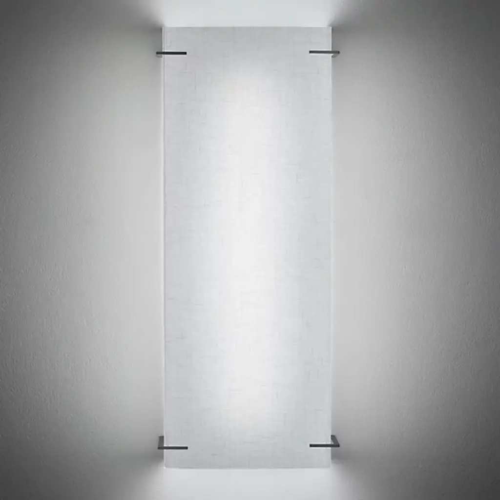 Decorate and illuminate your walls with the Loom 23517 LED Wall Sconce by Ultralights. Designed in 2023, his sconce seamlessly blends elements of both transitional and rustic modern styles, its rectangular shape featuring four slim metal brackets that elegantly secure the translucent fabric shade around the LED lamping. A mild steel structure secures the sconce; this sconce is robust, ADA-compliant, and damp-listed, making it versatile enough for various installations, creating a fusion of design elements that will enhance the ambiance of any space.