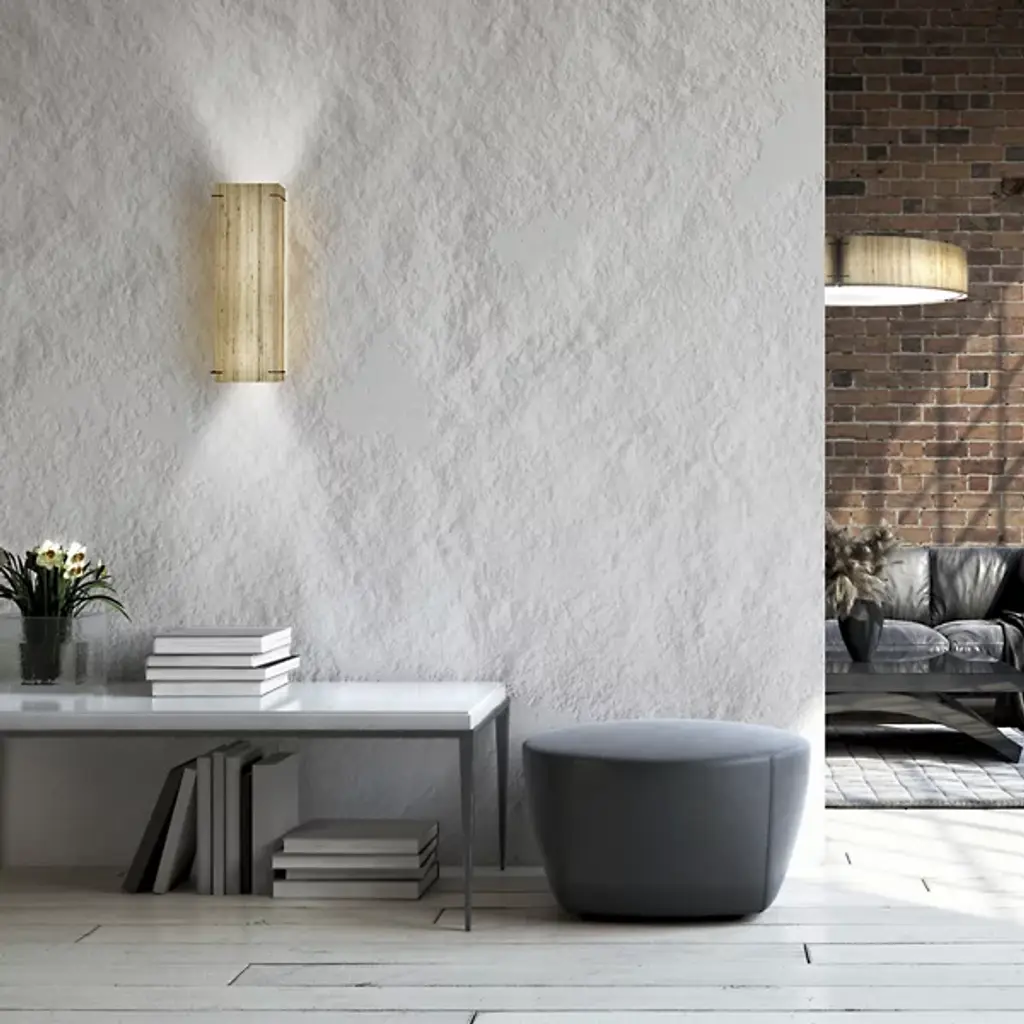 Decorate and illuminate your walls with the Loom 23517 LED Wall Sconce by Ultralights. Designed in 2023, his sconce seamlessly blends elements of both transitional and rustic modern styles, its rectangular shape featuring four slim metal brackets that elegantly secure the translucent fabric shade around the LED lamping. A mild steel structure secures the sconce; this sconce is robust, ADA-compliant, and damp-listed, making it versatile enough for various installations, creating a fusion of design elements that will enhance the ambiance of any space.