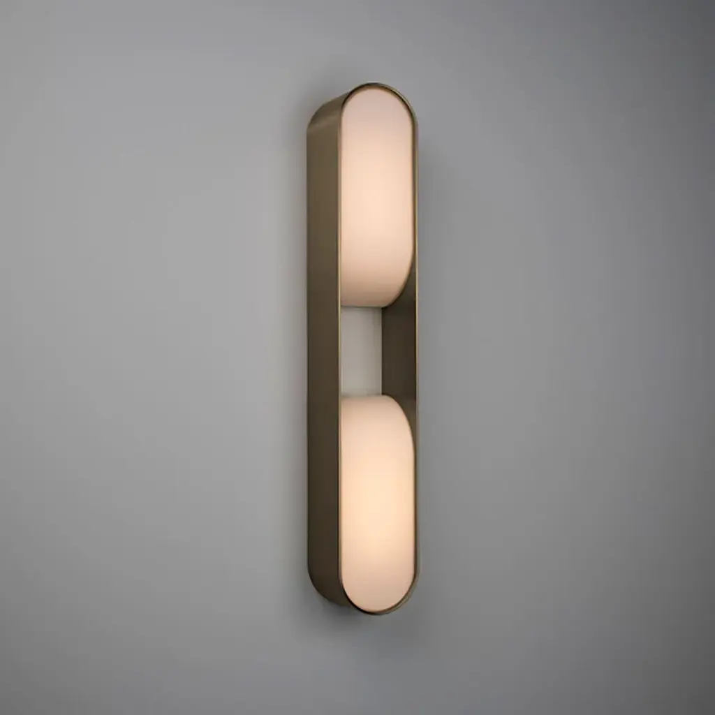 Expressing a warm desire for relaxation, the Loop Double LED Wall Sconce from Boyd Lighting utilizes a clean, symmetrical silhouette to unite the space. A shining metal band gently wraps around and forms the frame of two white glass shades that contain integrated, energy-efficient LEDs, creating a thin, vertical profile. Each LED provides a clean, warm glow that invites relaxation and comfort in the space – an ambiance much needed after a long day.