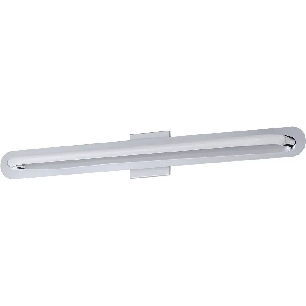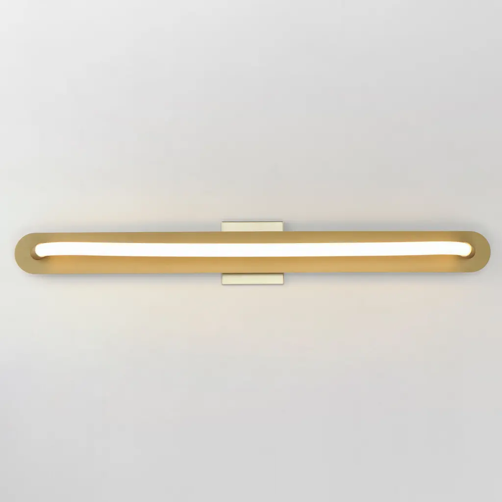 A single loop of white tubing features an omnidirectional LED light. The full backplate can be mounted on a single gang junction box for a clean installation and is available in either Polished Chrome or Gold. A five-inch cover plate is included for installation on standard 4-0 junction boxes.