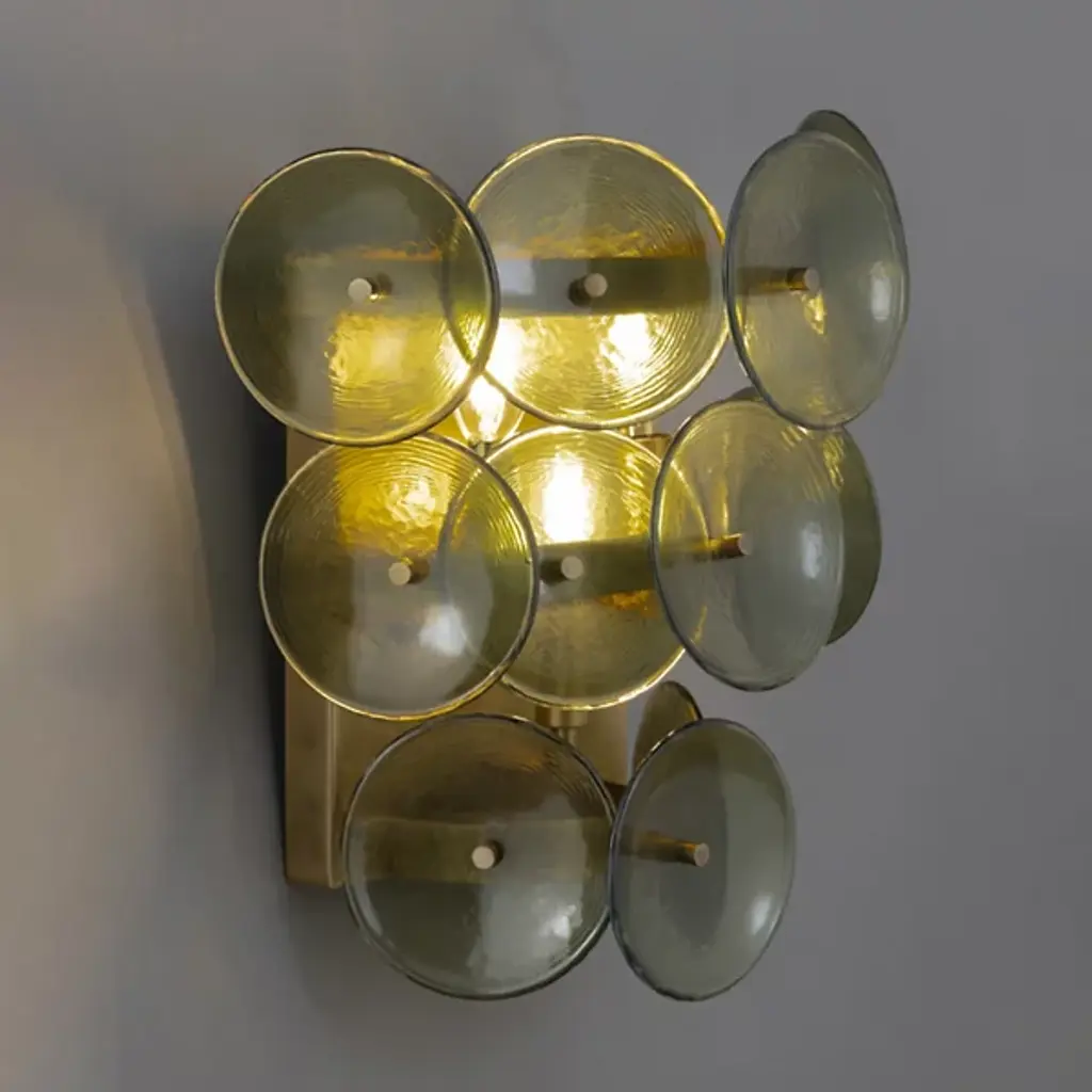 The Loren Wall Sconce from Maxim Lighting layers pressed glass discs in an arrangement inspired by mid-century Italian designers. Each handmade disc diffuses light differently depending on its position and proximity to the light source. The recycled glass components reflect an environmental consciousness while connecting to artisanal glass traditions. This sconce turns the wall itself into part of the lighting composition, using the surface as a canvas for light play. The fixture draws from vintage inspirations while satisfying contemporary expectations for efficient, thoughtful lighting solutions.