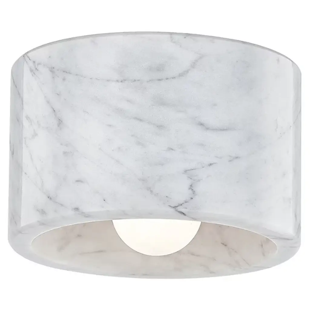 Simplicity with distinction. The Loris Flushmount / Wall Light by Hudson Valley Lighting makes an impact in any space. Crafted from natural Alabaster or Marble, the small-scale design showcases a drum shade with a Brass socket ring. Mother Nature designs each piece with its own natural veining patterns, so each luminaire offers its own character and distinction to the room. Designed for ceiling and wall installation, Loris adds another layer of light to a foyer, hallway, kitchen, bedroom or dining room.