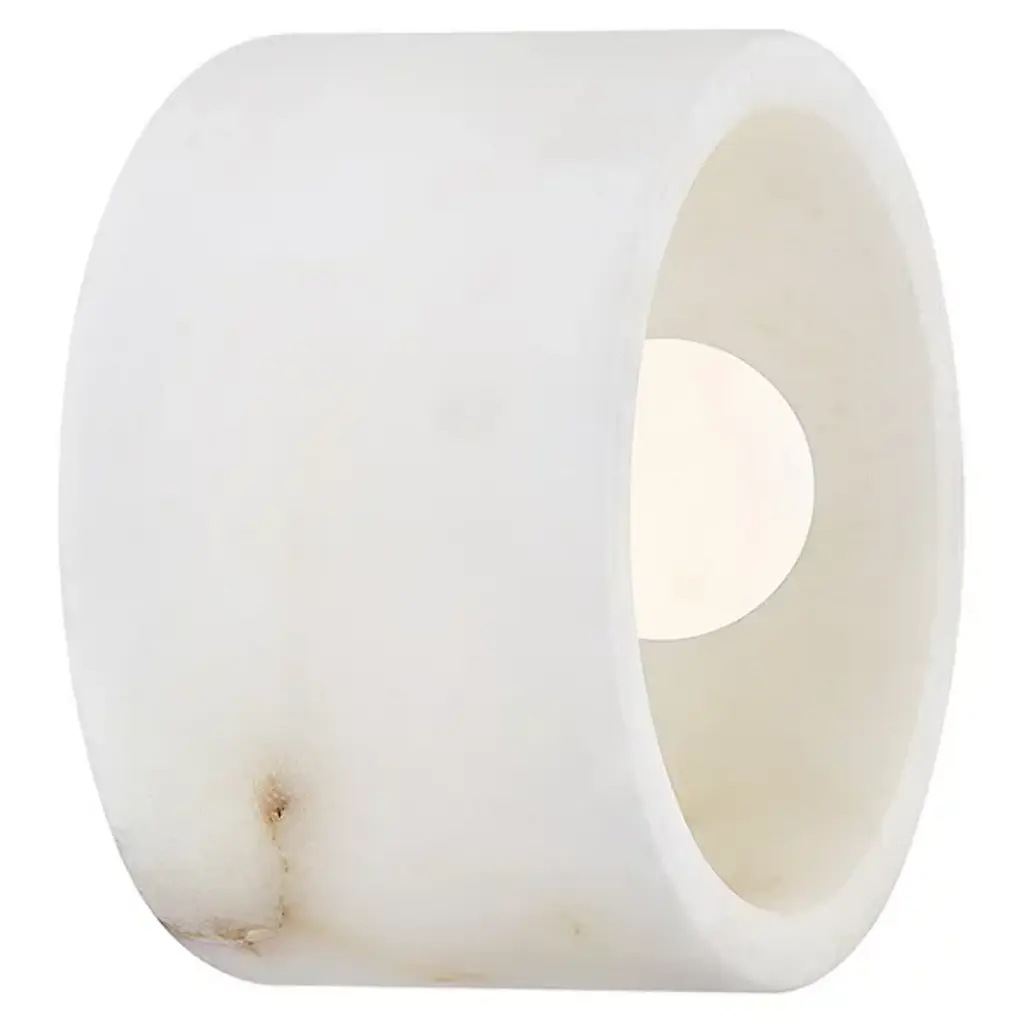 Simplicity with distinction. The Loris Flushmount / Wall Light by Hudson Valley Lighting makes an impact in any space. Crafted from natural Alabaster or Marble, the small-scale design showcases a drum shade with a Brass socket ring. Mother Nature designs each piece with its own natural veining patterns, so each luminaire offers its own character and distinction to the room. Designed for ceiling and wall installation, Loris adds another layer of light to a foyer, hallway, kitchen, bedroom or dining room.