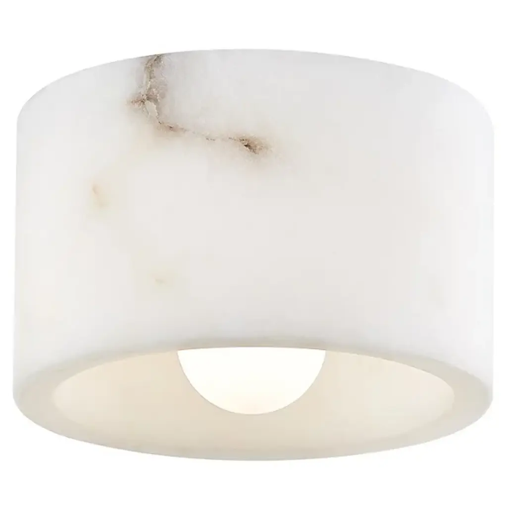 Simplicity with distinction. The Loris Flushmount / Wall Light by Hudson Valley Lighting makes an impact in any space. Crafted from natural Alabaster or Marble, the small-scale design showcases a drum shade with a Brass socket ring. Mother Nature designs each piece with its own natural veining patterns, so each luminaire offers its own character and distinction to the room. Designed for ceiling and wall installation, Loris adds another layer of light to a foyer, hallway, kitchen, bedroom or dining room.