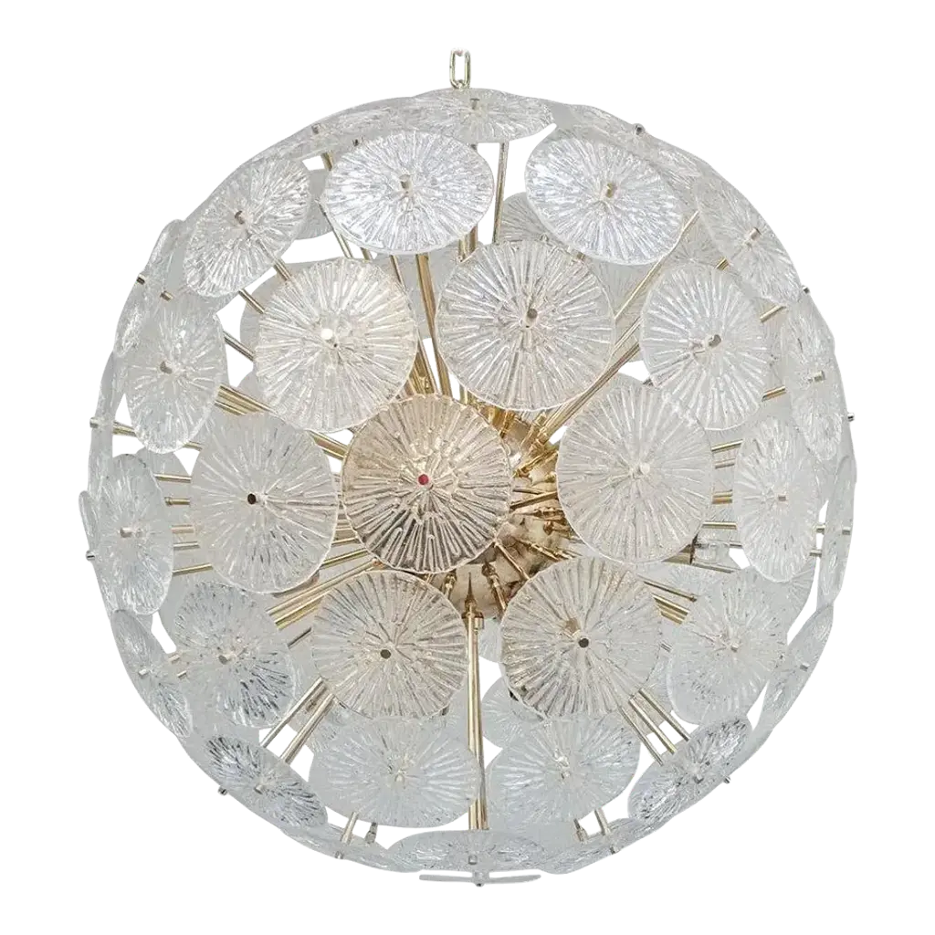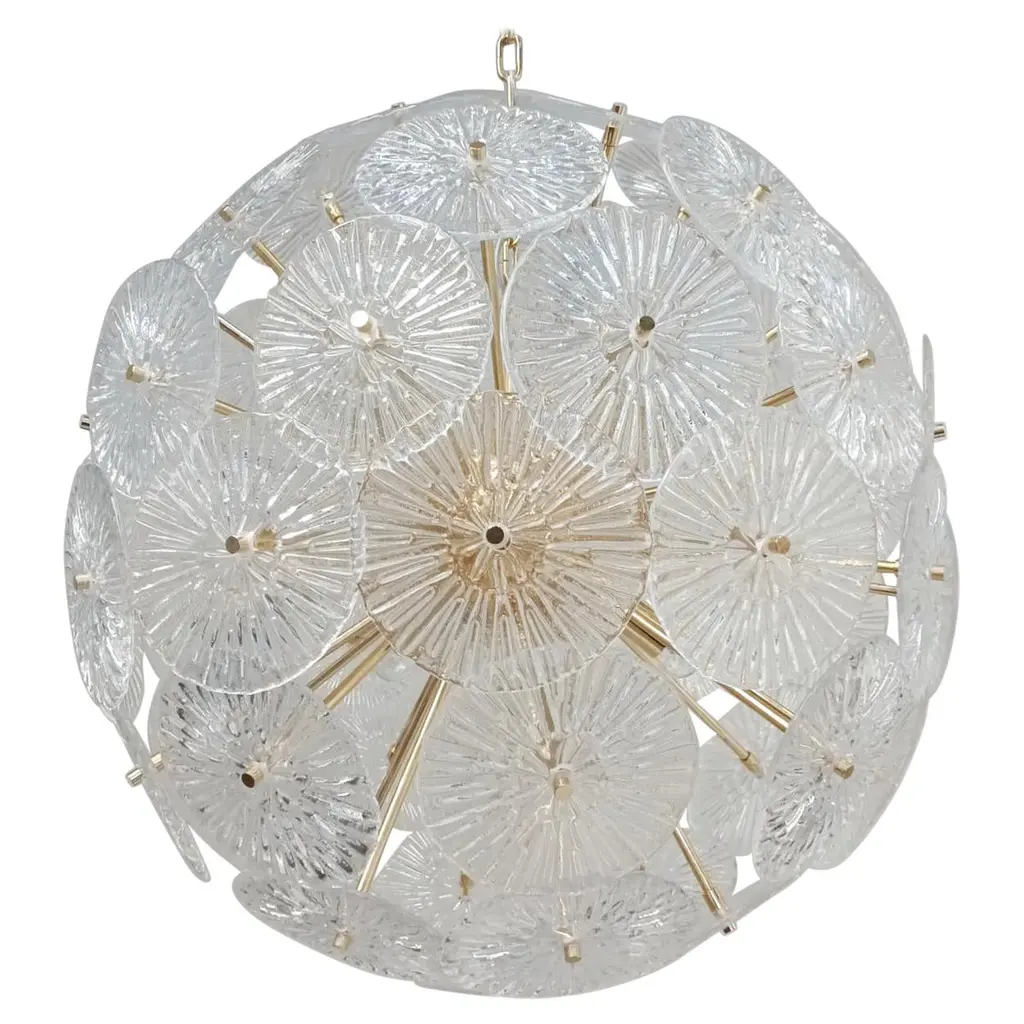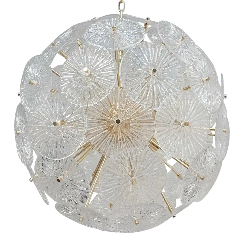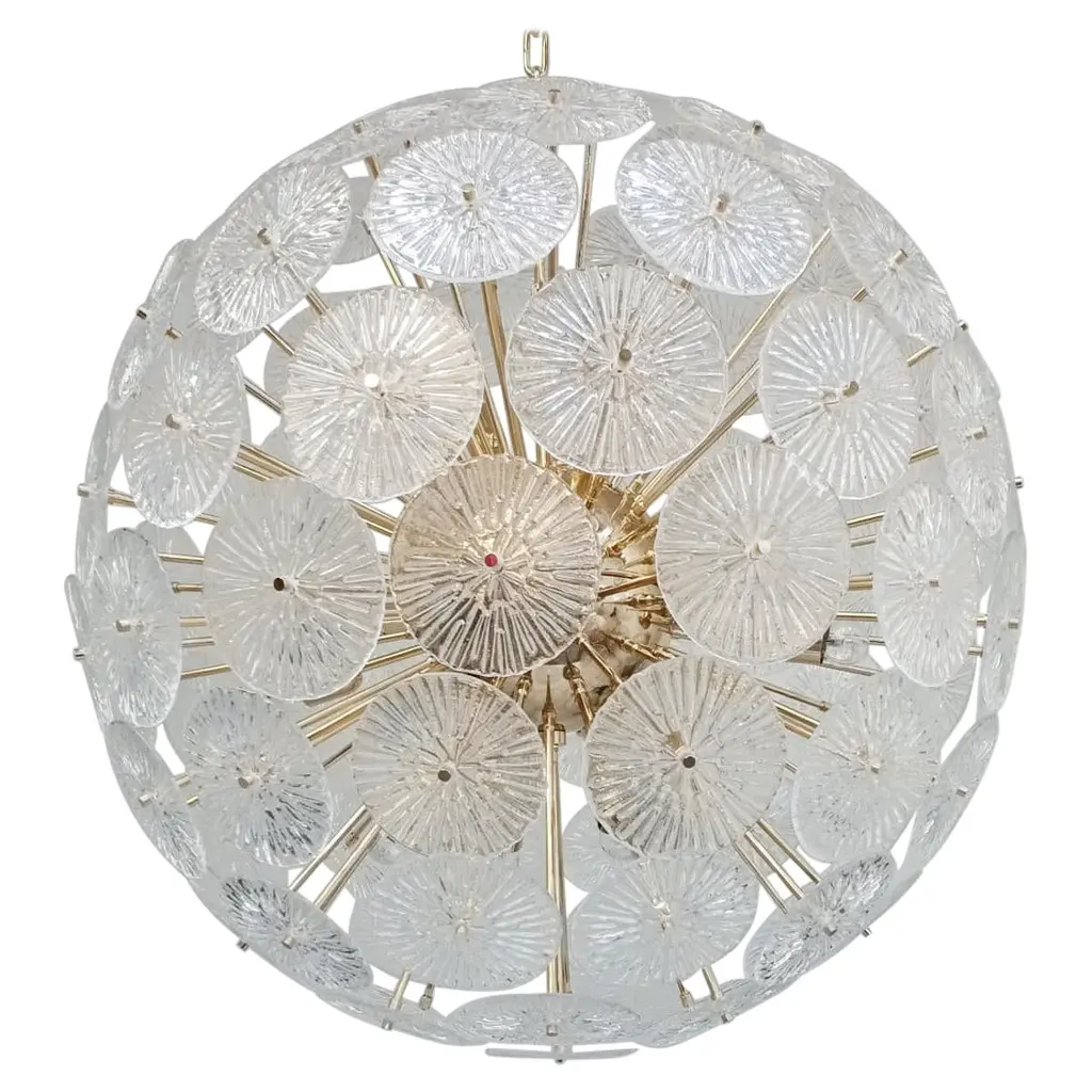 Oversized impressive Italian wall lights with clear textured Murano glass discs mounted on solid brass frames in polished lacquered finish, designed by Fabio Bergomi for Fabio Ltd, made in Italy8 lights / E12 or E14 type / max 40W eachMeasures: height 31.5 inches, width 13 inches, depth 8.5 inchesOrder only / this item ships from ItalyOrder reference #: FABIOTD W736