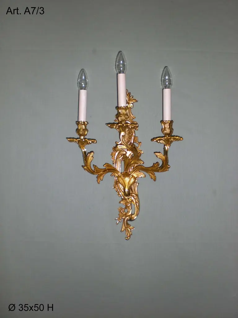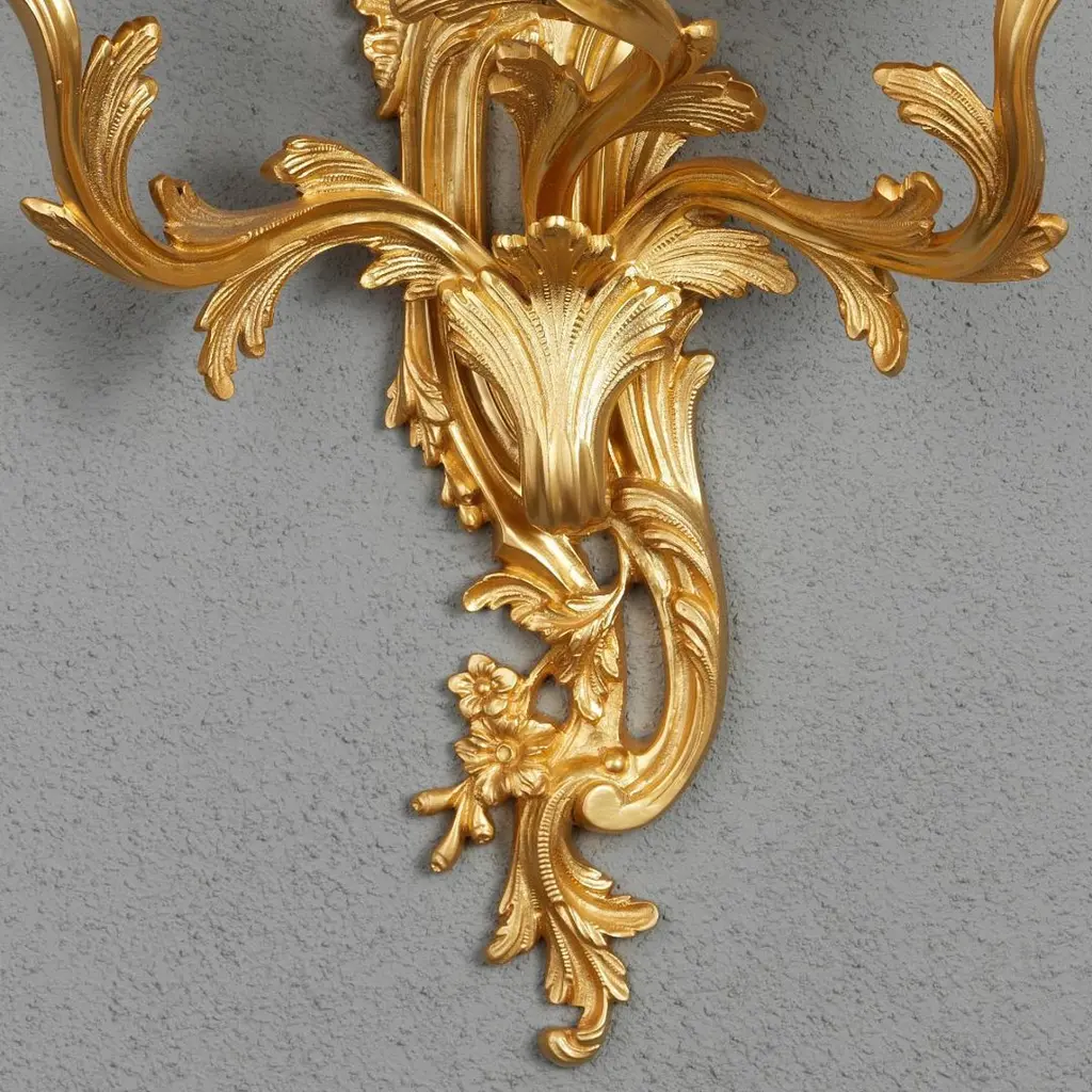 This Louis XV style gilt bronze wall sconce by Gherardo Degli Albizzi is beautifully cast in the traditional manner with all the sumptuous movement of the Rococo period, having three arms issuing from the plate and adorned with acanthus leaves and floral motifs.