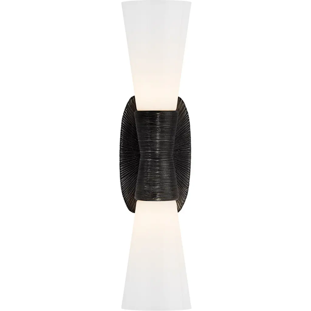 The Lov 01 Wall Sconce from Luminaire Authentik features a streamlined, hourglass-shaped frame made of fine aluminum. Inside the tapered shade glow vibrant LEDs. At your wall, a slender arm provides a clean connection to the round backplate. Whether flanking a bed or lighting a hallway, this wall sconce casts a subtle yet modern glow. With its slender metallic form, Lov brings refined brilliance to accent walls. Let illuminate your interior in delicate contemporary elegance.