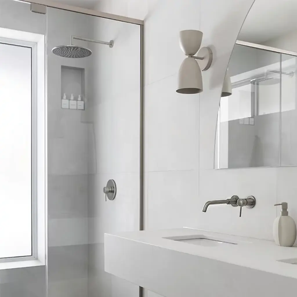 The Lov 01 Wall Sconce from Luminaire Authentik features a streamlined, hourglass-shaped frame made of fine aluminum. Inside the tapered shade glow vibrant LEDs. At your wall, a slender arm provides a clean connection to the round backplate. Whether flanking a bed or lighting a hallway, this wall sconce casts a subtle yet modern glow. With its slender metallic form, Lov brings refined brilliance to accent walls. Let illuminate your interior in delicate contemporary elegance.