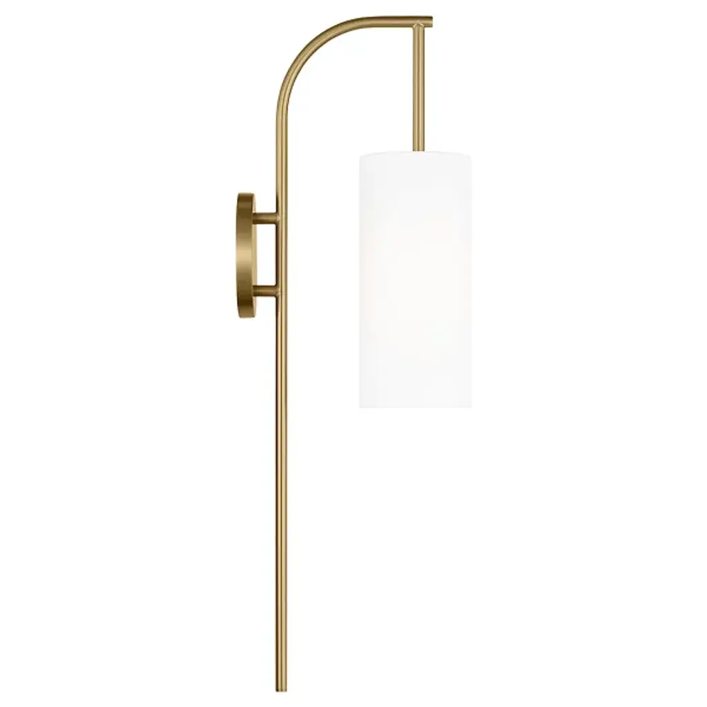 The Lowell Wall Sconce from Visual Comfort Studio is designed by Ellen DeGeneres. It is an amalgamation of contemporary and transitional styles. Lowell features a beautiful, cylindrically shaped shade of linen that suspends from a linear, curved steel body. This steel framework is stabilized by a backplate on your wall, bringing balance to this wall sconce as it illuminates hallways, foyers, and more. Effortlessly adjust its LED’s brightness level with a separately sold ELV dimmer.