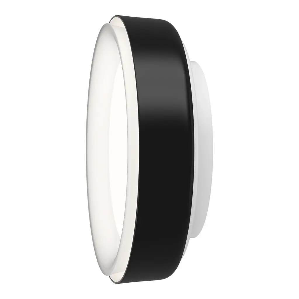 The circular luminaire emits a combination of softly diffused, glare-free, downwardly directed light and reflected indirect light from its curved upper rings. A large angled reflector encircles the diffuser and reduces the contrast around the edge. The top reflector is perfectly curved to distribute uplight at a broad angle. A colored outer shade surrounds the reflector and creates an interreflection of light, resulting in a graceful glow on the outside of the top and bottom reflectors. In total, it creates four rings of light surrounding the central diffuser.