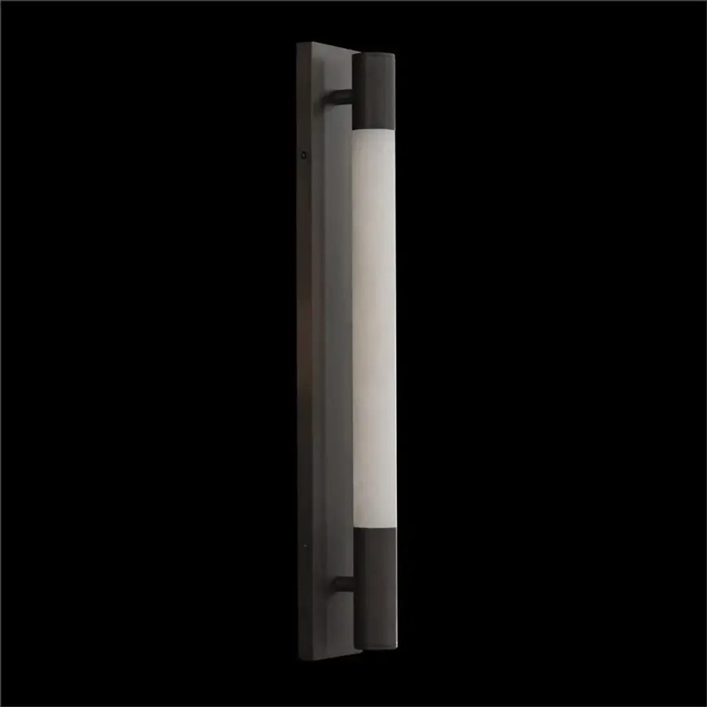 The Luca Wall Sconce is an elegant statement piece, showcasing a stunning rod of natural alabaster stone affixed to metallic hardware in a Dark Bronze finish. Light is beautifully diffused through the gorgeous stone, creating a wonderful ambiance in any décor.