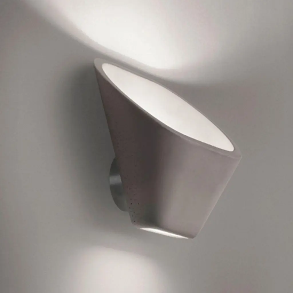 Lucidi & Pevere Hand-Poured ‘Aplomb’ concrete wall lamp in maroon for FoscariniDesigned by Lucidi & Pevere and produced by Foscarini, the Italian lighting firm founded in Venice on the legendary island of Murano, where generations of master craftsman have skillfully used their unmatched imagination and skill to create the most innovative works of light into the modern era. The ‘Aplomb’ wall lamp is fabricated using many of the same artisanal techniques perfected over centuries, with thoughtful attention to detail, use of high quality materials and incomparable rigor and passion, resulting in a lamp that conveys extreme elegance and formal simplicity. Expertly crafted with an exclusively formulated hand-poured concrete, the 'Aplomb' sconce casts both an indirect and reflected light through its two openings resulting in a sophisticated interplay of light on the walls.Price per item. In stock and available in unlimited quantities. Available in white, maroon, and concrete grey. This listing is for the 'Aplomb' sconce in maroon.In stock lead time 2 weeks. Out of stock can add 12 weeks or more. Please note that inventory and availability can change without notice. Please contact us for current lead time and availability prior to placing time sensitive orders.Illuminated via an integrated LED providing 14 watts with a 2700k color, CRI >80 and 1120 lumens. Dimmable with Seoul-Acrich LED compatible modules (not included). Not UL listed, but recommended UL listing possible from an authorized 3rd party vendor for an additional fee. Contact us for more information.All sales final.