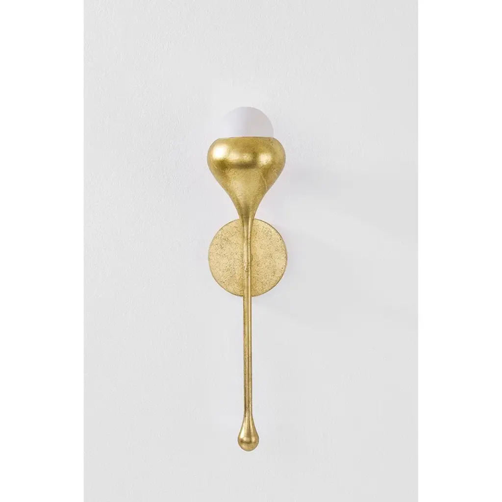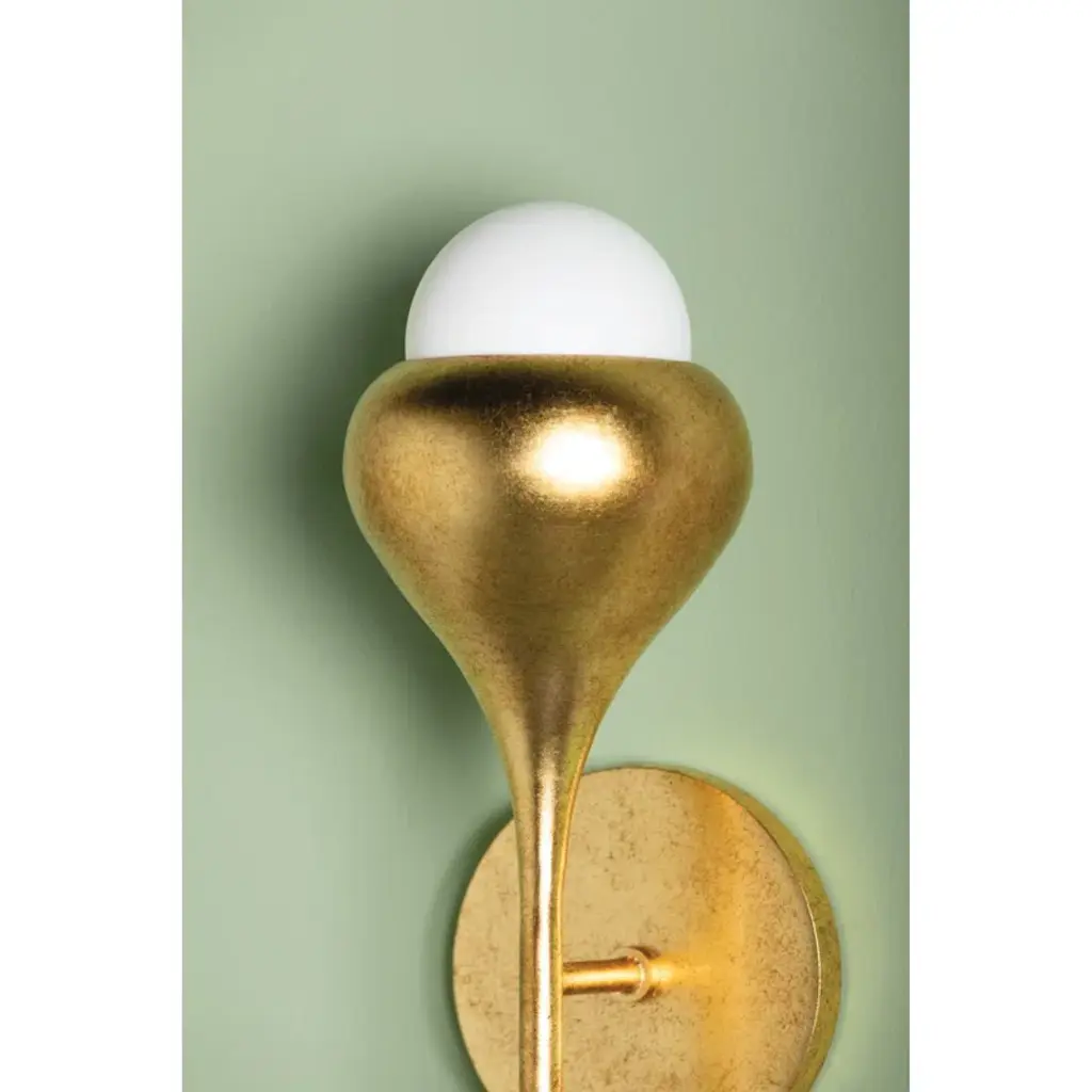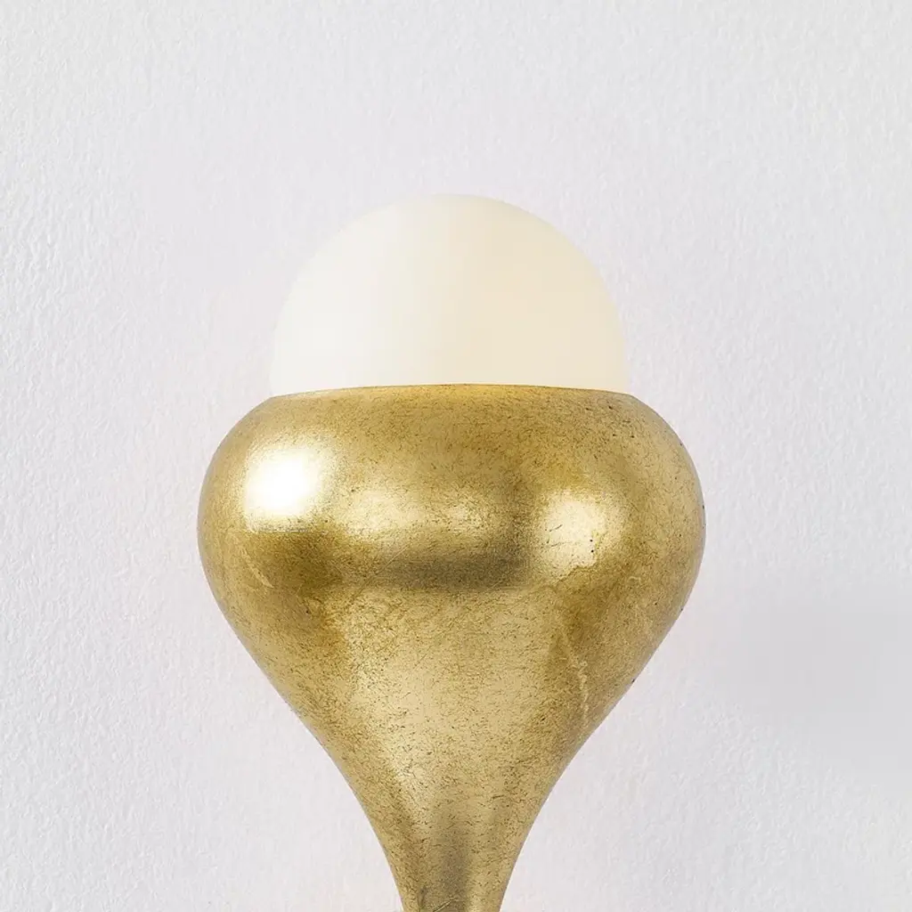 Inspired by an acorn growing on a branch, Luciel features gently curved forms, soft Opal Shiny Glass shades, and a luxurious Vintage Gold Leaf finish. The refined, jewelry-like aesthetic of the fixture is elongated to create a surreal, otherworldly representation of nature.