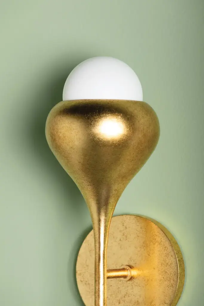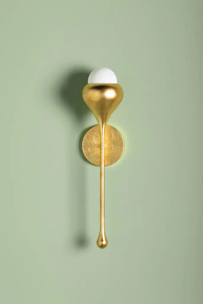 Inspired by an acorn growing on a branch, Luciel features gently curved forms and a luxurious Vintage Gold Leaf finish. The refined, jewelry-like aesthetic of the fixture is elongated to create a surreal, otherworldly representation of nature. Luciel is available as a sconce, chandelier, and pendant.