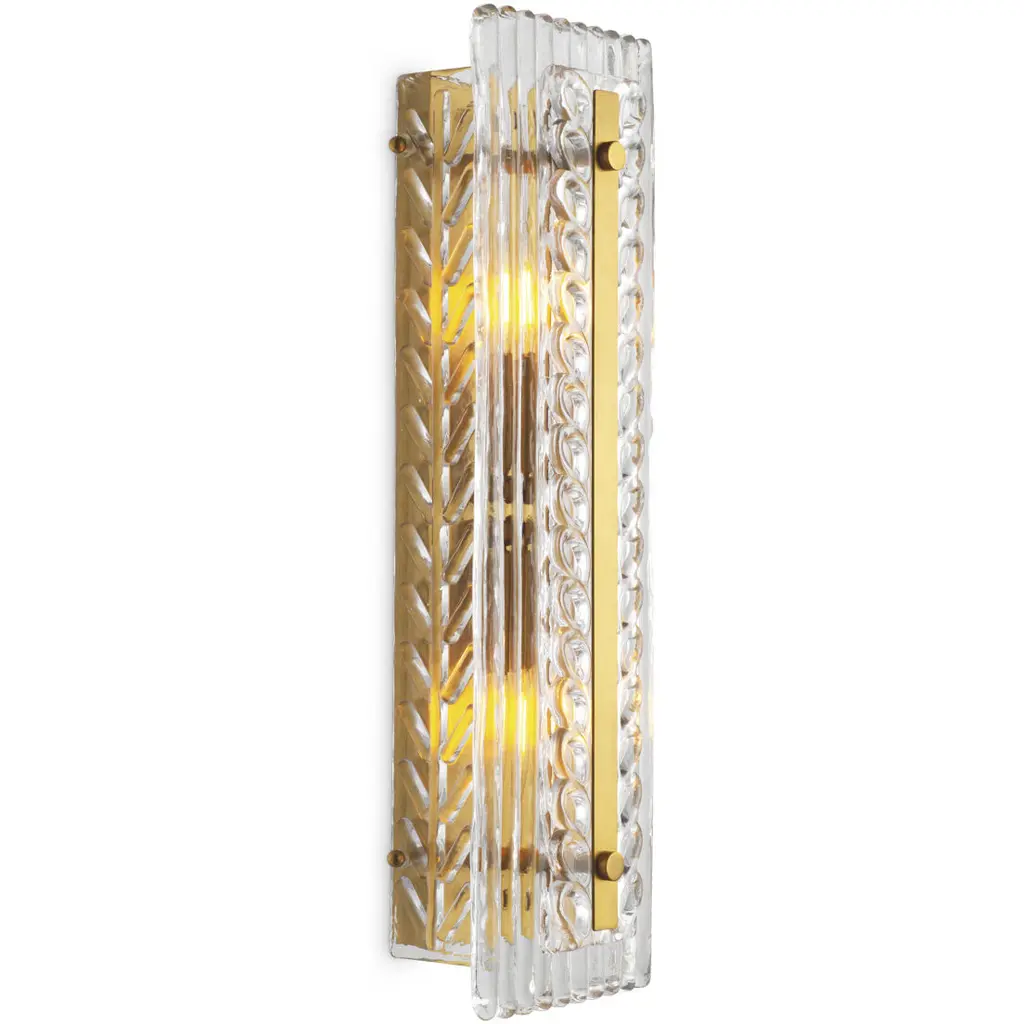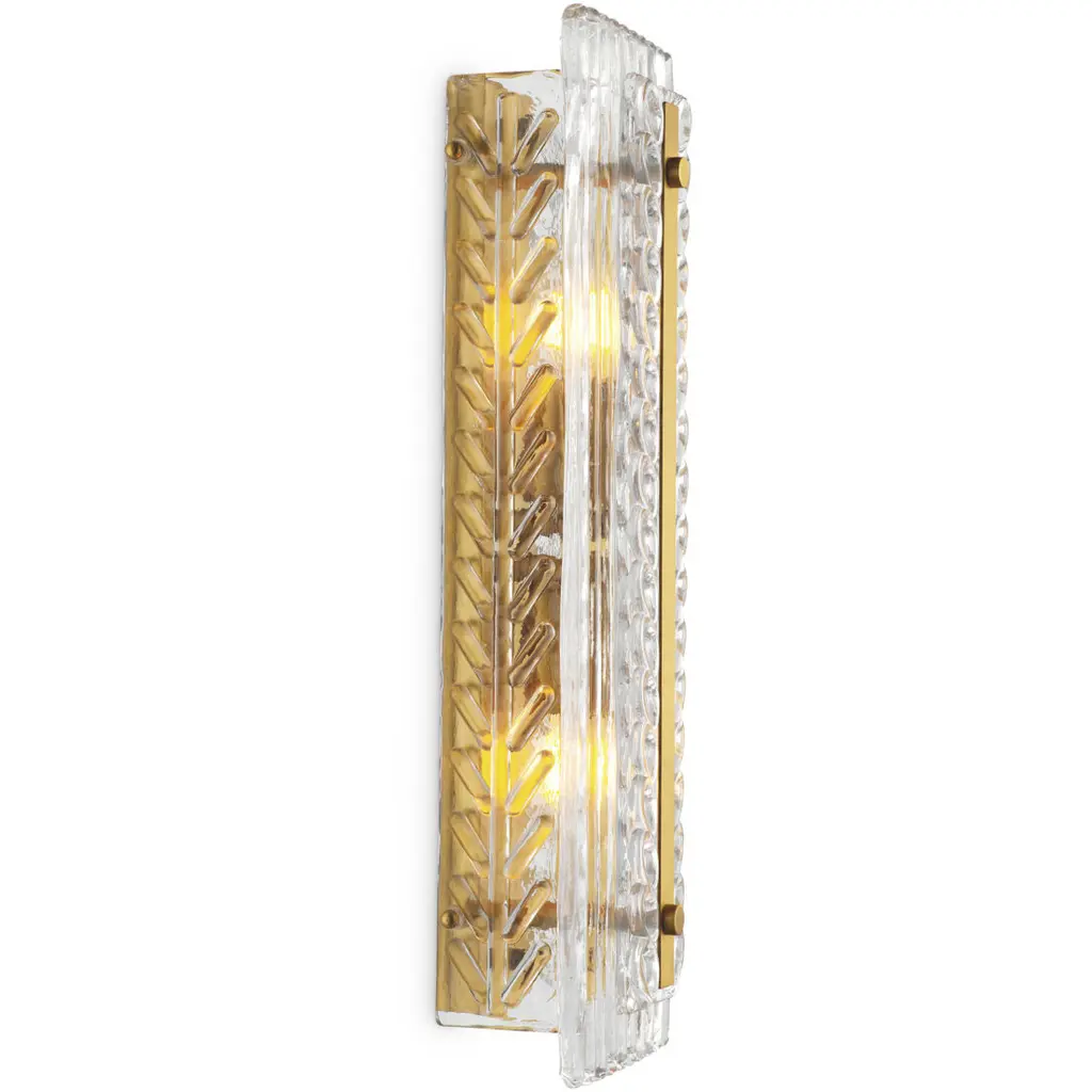 The Luciene Wall Lamp enchants with its antique brass finish, seamlessly blending timeless appeal with modern sophistication. Its layered handmade glass, adorned with intricate patterns, casts a gentle illumination that enriches any high-end setting. Elevate your surroundings with its luxurious design, perfectly suited for those with a discerning taste in elegant lighting solutions.