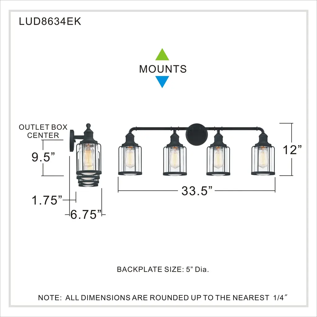 Ludlow 4 Light 34 Inch Earth Black Bath Light Wall Light