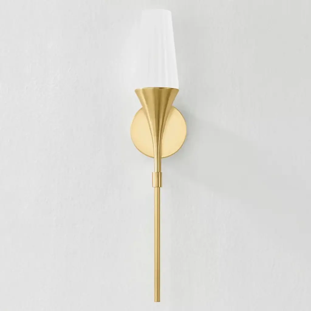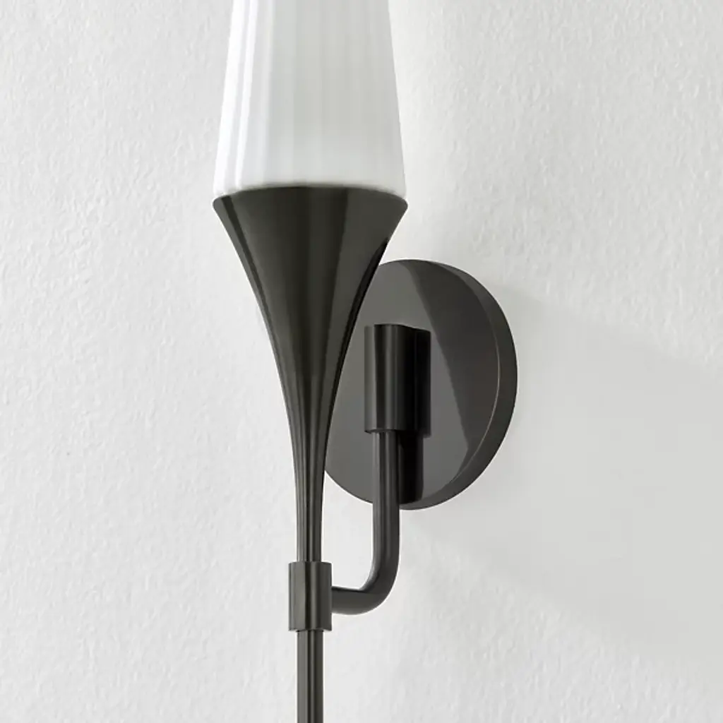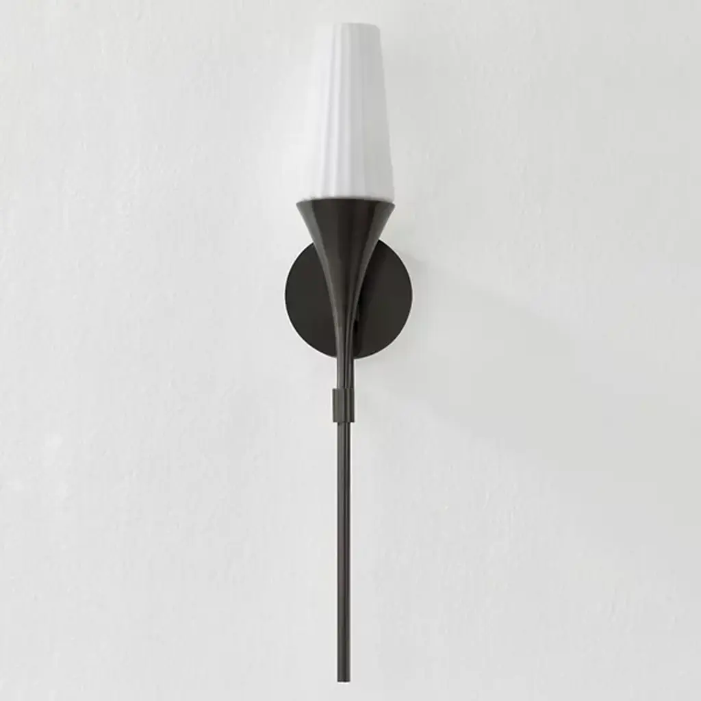 The Luisa Wall Sconce from Mitzi is a modern heirloom that brings a touch of elegance to any home. Evoking the charm of a vintage torch, this sophisticated sconce features a slender L-shaped arm for support. The fluted matte opal shade pays homage to classical design, while the elongated proportions and minimalist hardware updates infuse a contemporary flair. It seamlessly blends timeless appeal with modern aesthetics, making it a perfect addition to any stylish interior.