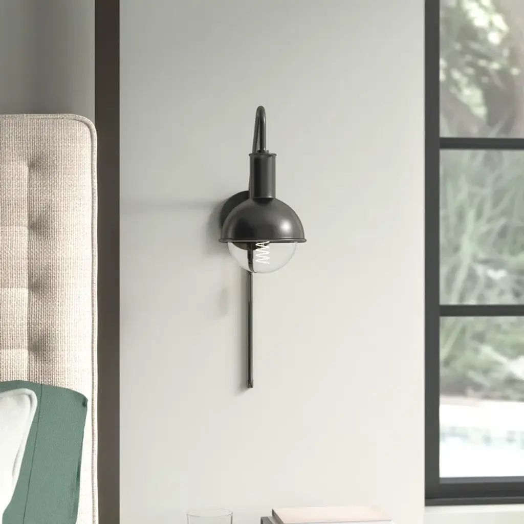 Whether you're entertaining friends or enjoying some "you" time, sconces like this one set to a dimmer switch allow you to master the mood. This hardwired sconce is made from metal with the sleek finish of your choice, so it's easy to pair with all sorts of different aesthetics and color palettes. The circular backplate features a long, thin accent arm and a curved support arm that houses the clear glass globe shade. Inside, this sconce accommodates a single 60W incandescent bulb (included). Plus, it's safe to use in damp locations like a bathroom or covered porch.