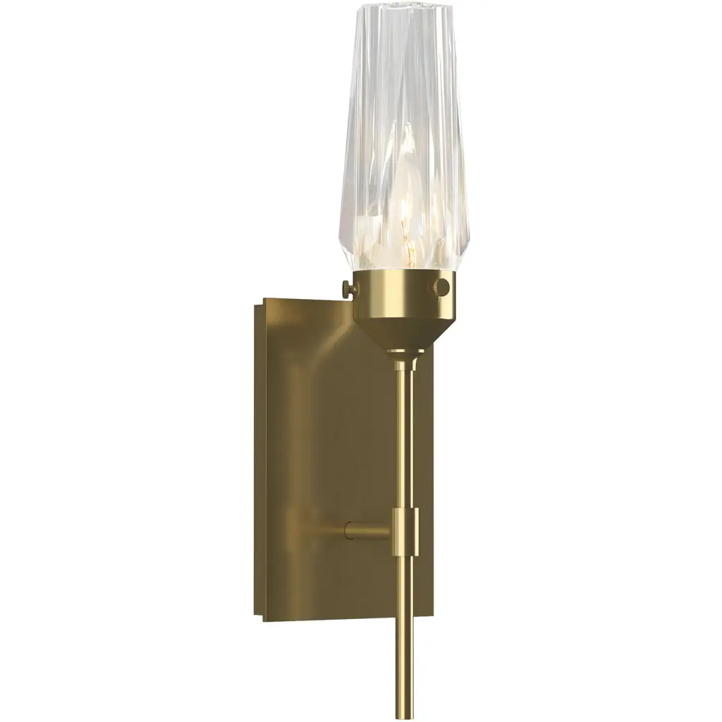 A thick, lustrous jewel of faceted crystal encases the light source within this dazzling wall sconce. The Luma Sconce is eye-catching opulence that offers a sophisticated beauty even when unlit.