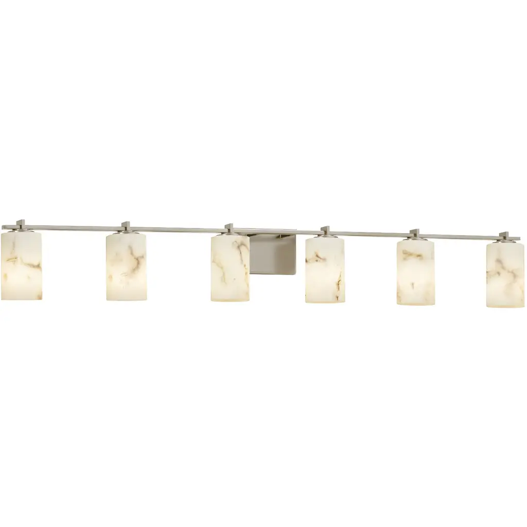 Lumenaria 6 Light 55.75 Inch Brushed Nickel Bath Bar Wall Light In Round Flared, Incandescent