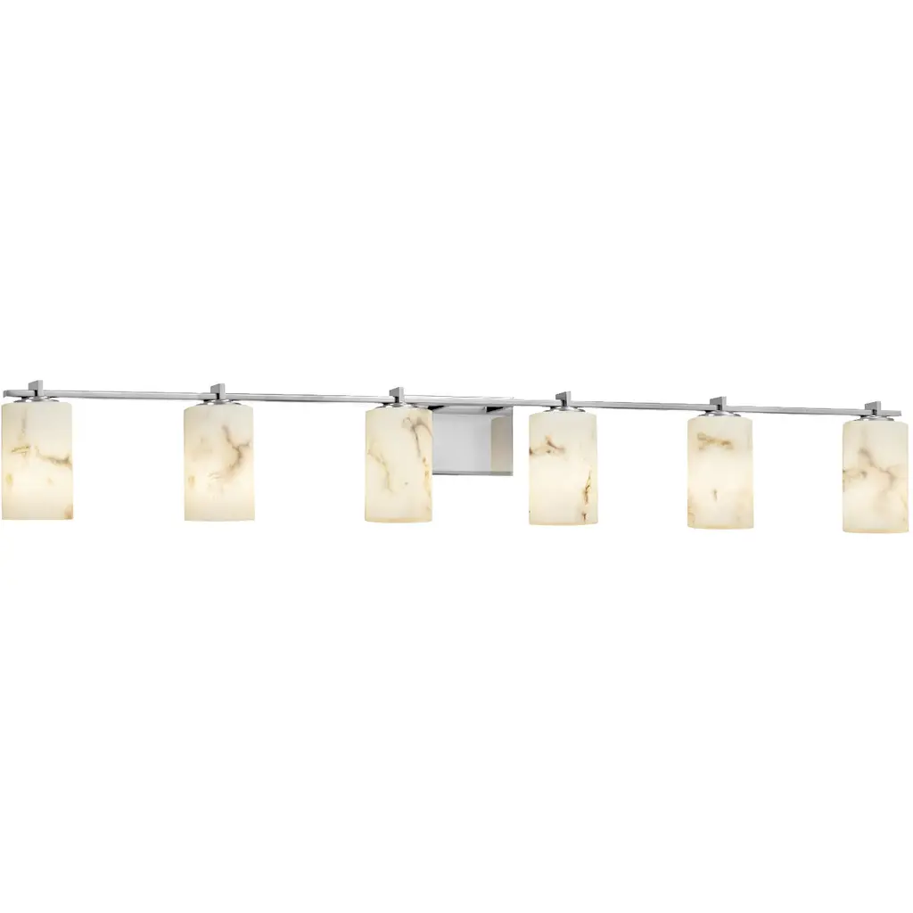 The LumenAria Collection of faux alabaster fixtures provides the warmth and glow of genuine carved alabaster without the cost.Shade Design: Cylinder with Flat Rim Shade.Shade Material: Resin.Overall Dimensions: 6.75" H X 24" W X 5.5" Extension.Backplate Mounting Center: 6" Up; 0.75" Down.Features: This fixture can be installed as an uplight or downlight.UL certified in compliance with nationally recognized product safety standardsDamp Location rated to accommodate any room in the homeLED is compatible with Incandescent/Triac/ELV dimmers.120 volts.Number of Bulbs: 1Full Fixture Wattage: 27WBulb 1 Base: Dedicated LED EngineBulb 1: LEDBulbs Included? Yes