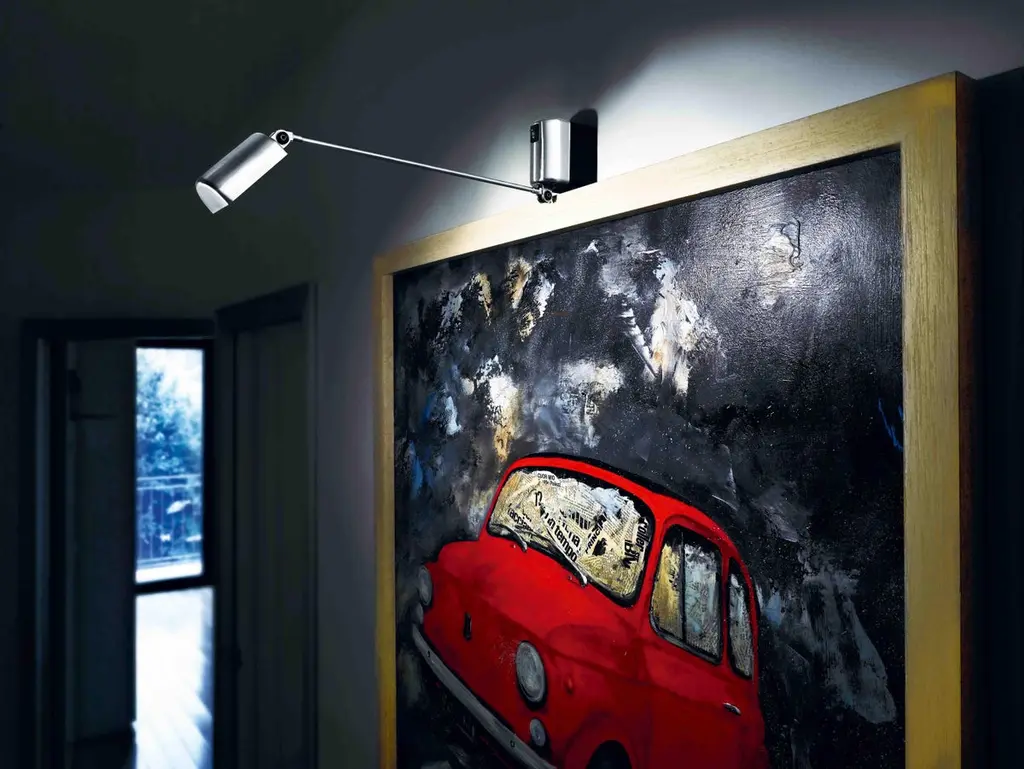 Wall lamp made of steel with an adjustable, pivoting arm. The head can rotate 360°. Light Source: 4WLED, with an On/Off switch. The maximum energy absorption is 5.3W.On/Off SwitchSource:1× 4W LED3000K / 320lmCode:05L01st.