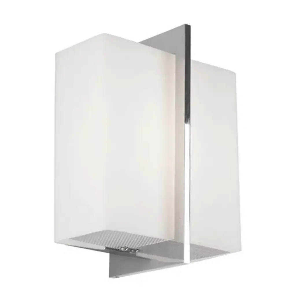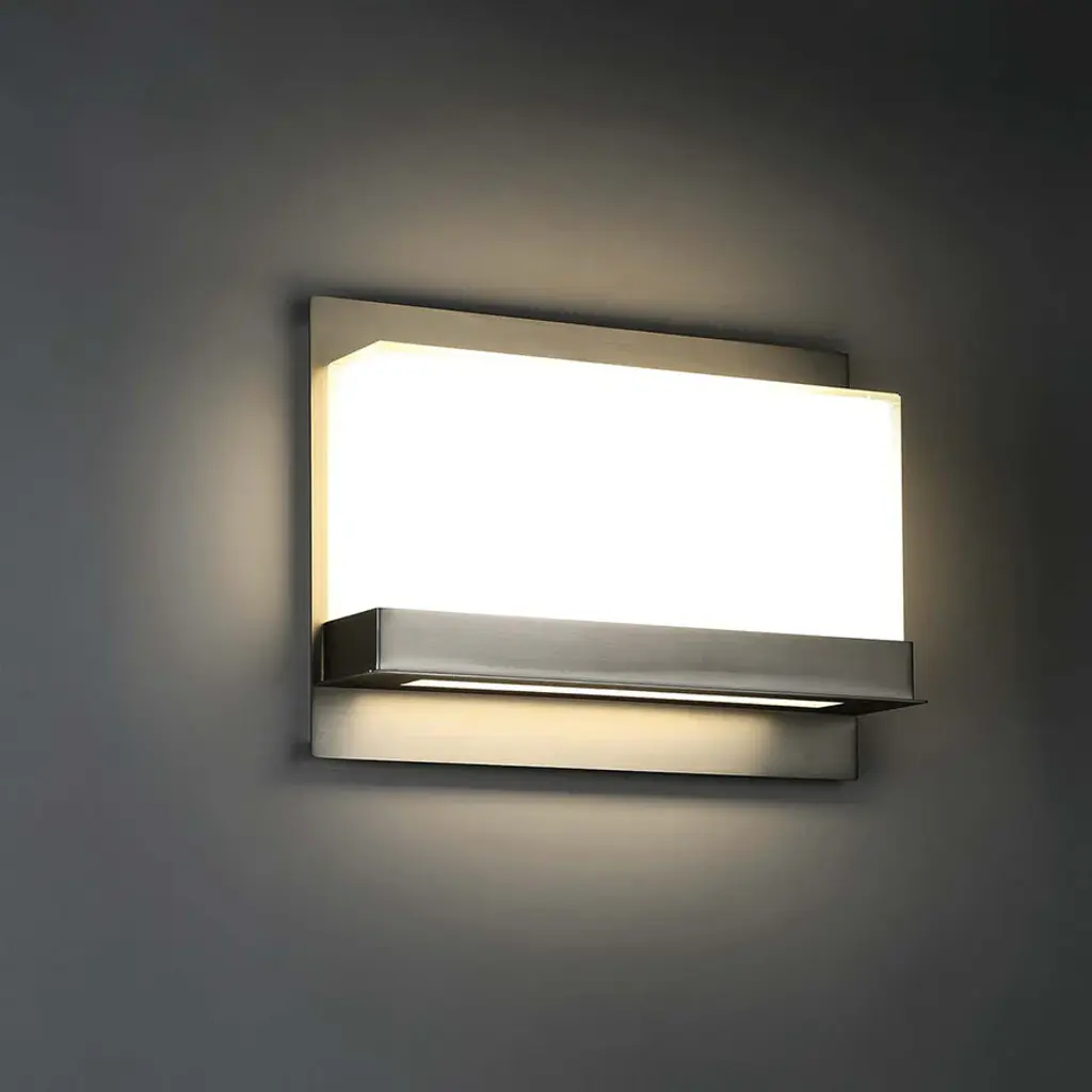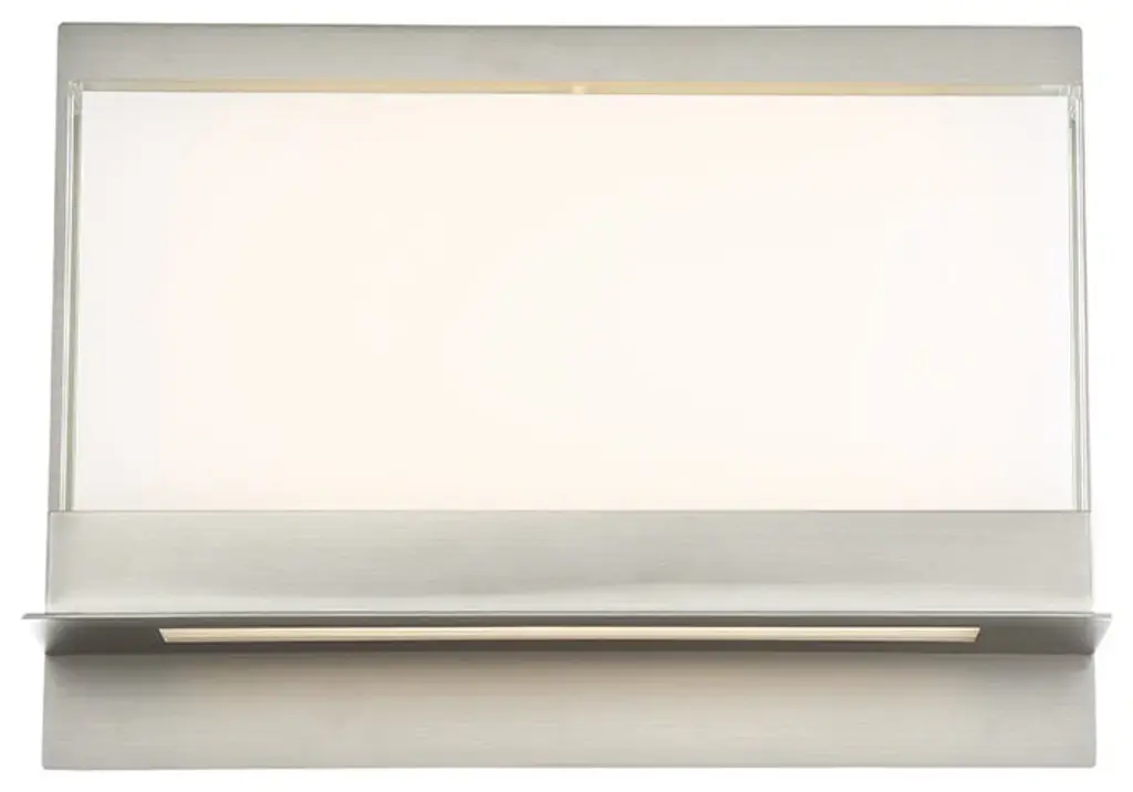 A luxe satin nickel stage keeps the focus on the main attraction a beautiful box of pure ambient light. Hand-crafted mitered glass adds refinement to the presentation, while powerful LEDs inside communicate an incredible illumination perfectly tuned to the right color temperature, color rendering and lumen diffusion. A downlight underneath the base adds task functionality for versatility as a sconce or bedside light. Solid aluminum construction with white mitered cut glass and high powered dimmable LED''s. CEC Title 24, and low profile ADA compliant. Up and down illumination. Universal Input Voltage Driver (120V-240V-277V) located in 4in junction box. Custom CCT options available by special order. Smooth and continuous dimming with an electronic low voltage (ELV) dimmer. High Powered Replaceable LED Module CRI: 90, Rated Hours: 80,000, Color Temp: 2700K, 3000K, and 3500K. Standards: ETL & cETL listed for damp locations. ETL CertifiedNo UL CertificationLighting Location: DampLighting SpecificationsWattage: 10Number of Bulbs: 2Bulb type: LED ModuleBulbs includedHardwire