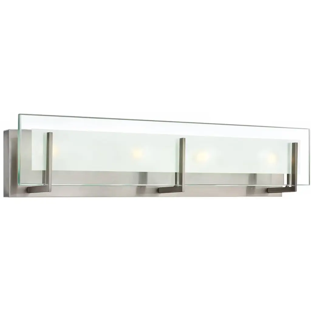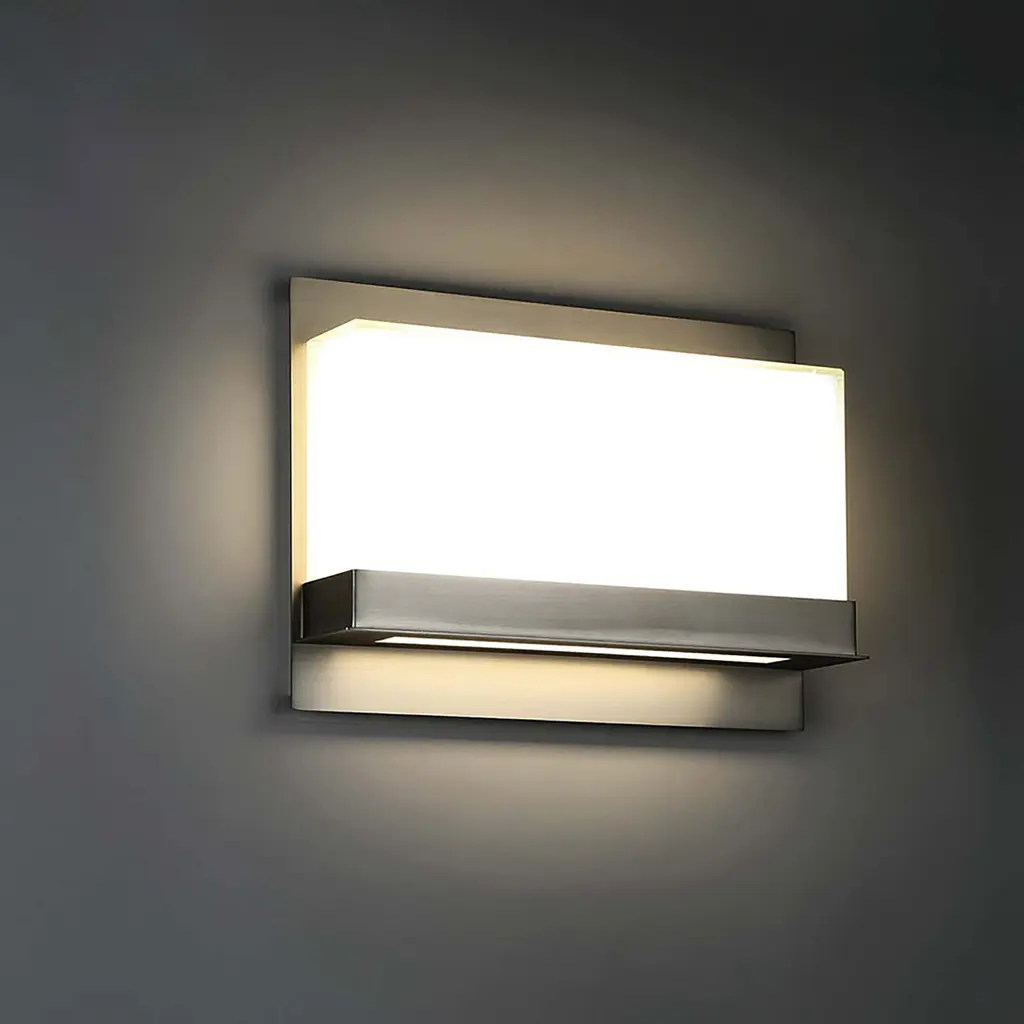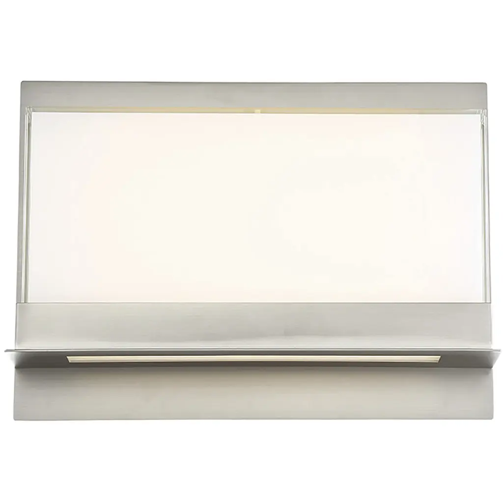A luxe satin nickel stage keeps the focus on the main attraction—a beautiful box of pure ambient light. Hand-crafted mitered glass adds refinement to the presentation, while powerful LEDs inside communicate an incredible illumination perfectly tuned to the right color temperature, color rendering and lumen diffusion. A downlight underneath the base adds task functionality for versatility as a sconce or bedside light.