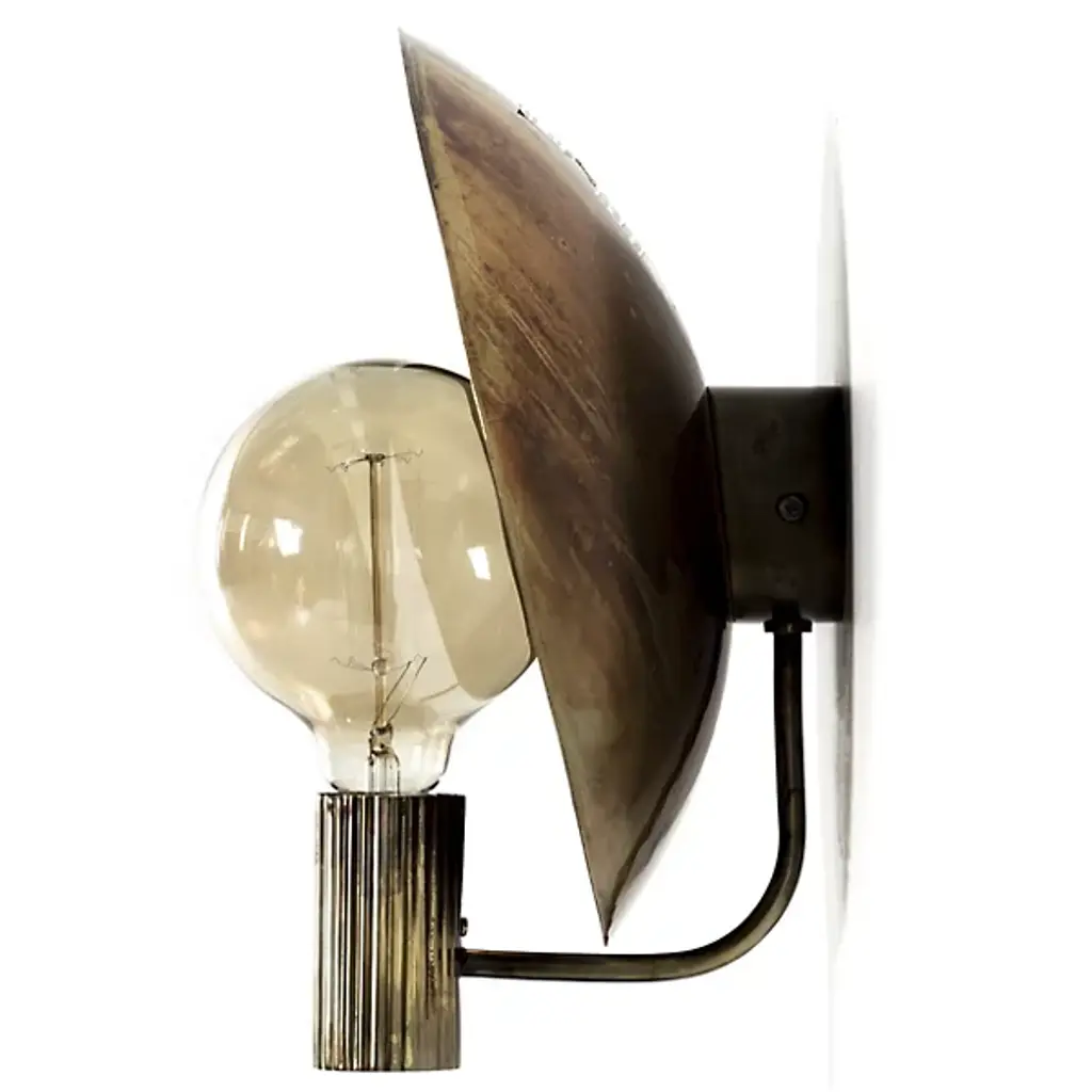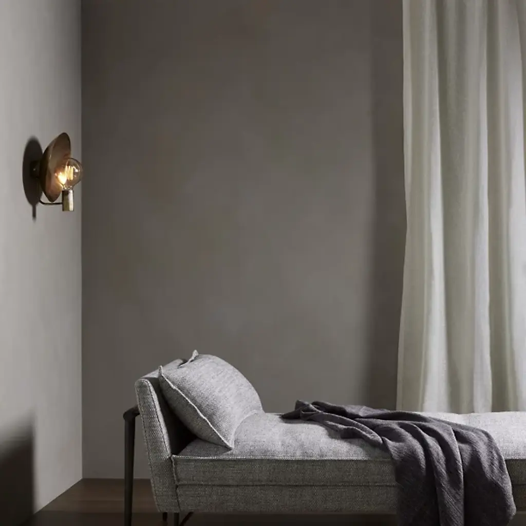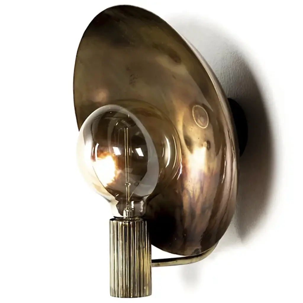 The Lund Wall Sconce from Four Hands puts metalsmithing in focus with an ultra-refined design inspired by the Scandinavian designs of the 1950s. It’s a simple yet poetic piece, mounting to one’s wall with a floating quality. Made from real brass, the large reflecting plate creates a crisp, circular outline around the lamping. The lamping sits atop a fluted brass holder that catches the eye with fine linear detail. The bare bulb design glazes the plate with a golden hue as it beams out a nurturing glow.